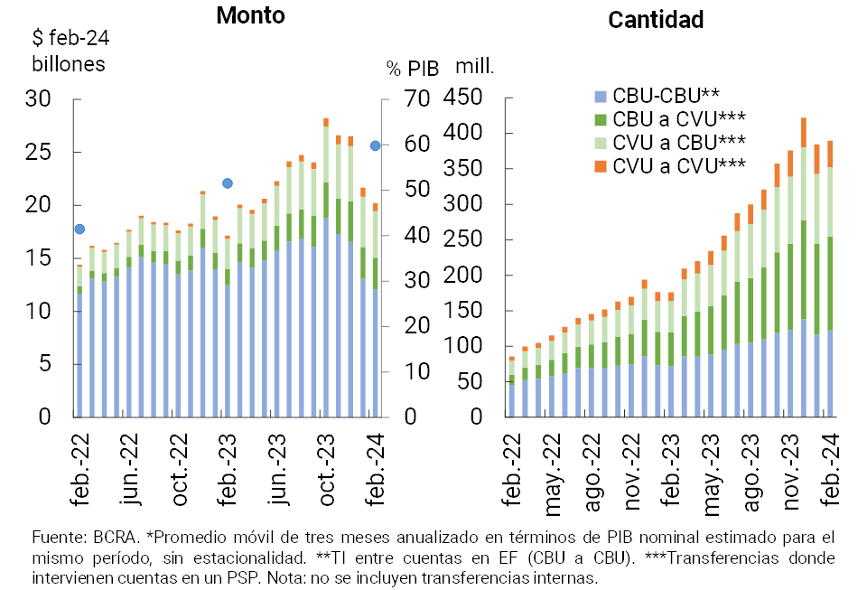18 En febrero el valor de las TI promedió aproximadamente $51.000 ($96.200 para las TI entre CBU, $20.600 para las TI entre CVU, $22.600 de CBU a CVU, y $45.000 entre CVU y CBU).