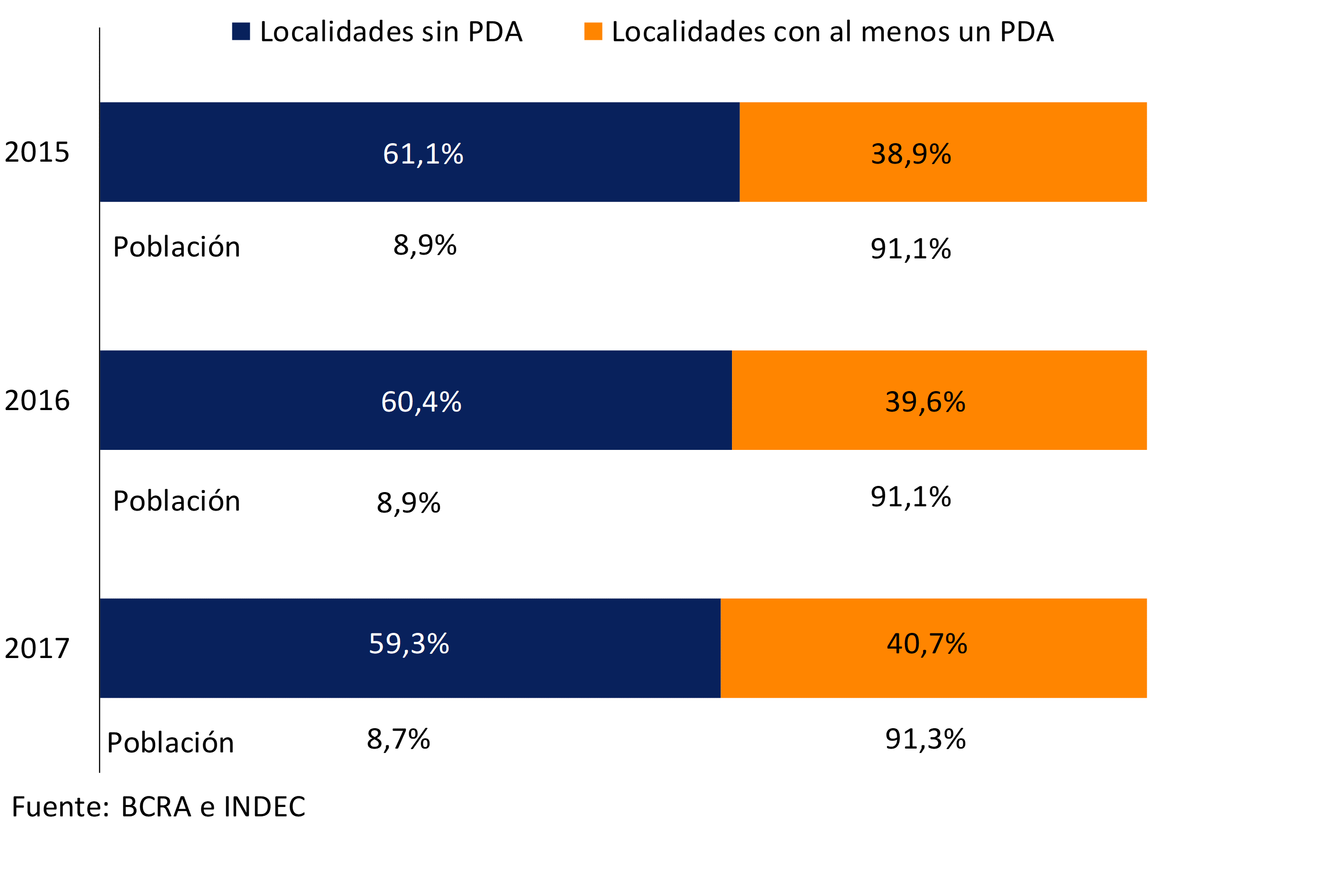 En términos de inclusión financiera, en la última parte de 2017 y en el comienzo de 2018 siguieron observándose avances, con una mayor cobertura en términos de puntos de acceso (PDA) (ver Apartado 4). Complementariamente, desde el último IEF el BCRA siguió adoptando medidas tendientes a simplificar el acceso del público a los servicios financieros (ver Anexo Normativo).