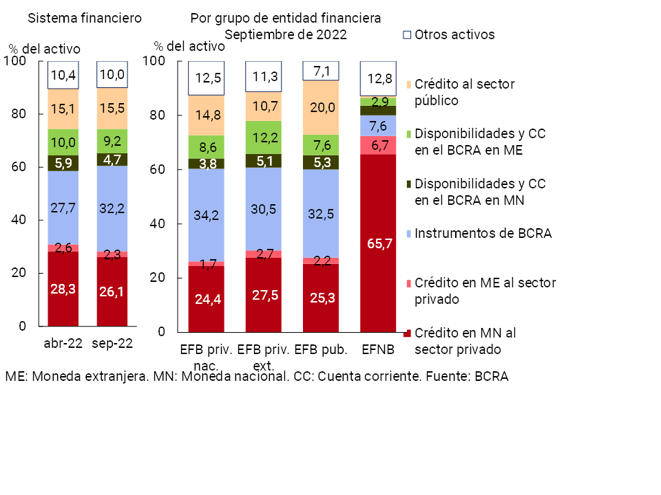 En 2022 el sistema financiero argentino desarrolló de forma continua sus funciones de provisión de servicios de intermediación de fondos y de pagos. El sistema mantuvo moderadas exposiciones a los riesgos enfrentados y elevados márgenes de coberturas con activos líquidos, previsiones y capital.