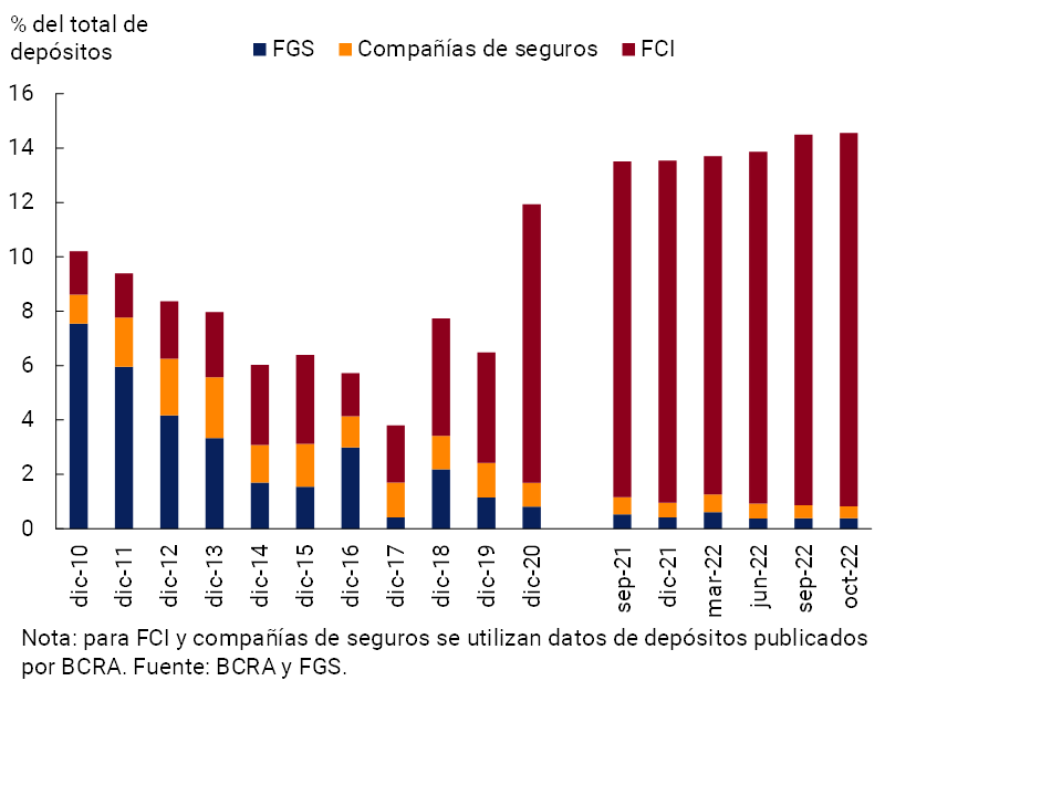 En este contexto, no podría descartarse eventuales cambios en el nivel y composición del fondeo del sector de concretarse alguno de los factores de riesgo planteados en la sección 2.2.