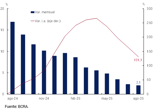 1 El M3 privado incluye el circulante en poder del público y los depósitos en pesos del sector privado no financiero (a la vista, a plazo y otros).