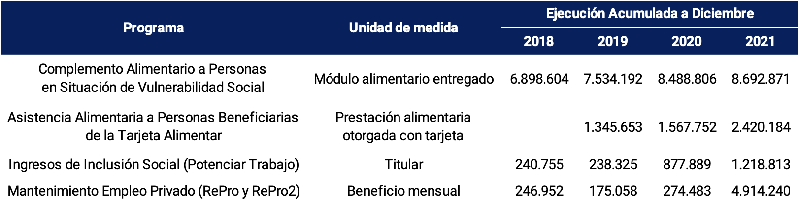 32 Vale aclarar que a lo largo de este apartado se hará referencia a los principales programas propuestos por el Gobierno, tanto por monto como por universo alcanzado, quedando por fuera varios otros que coexisten con los aquí presentados.