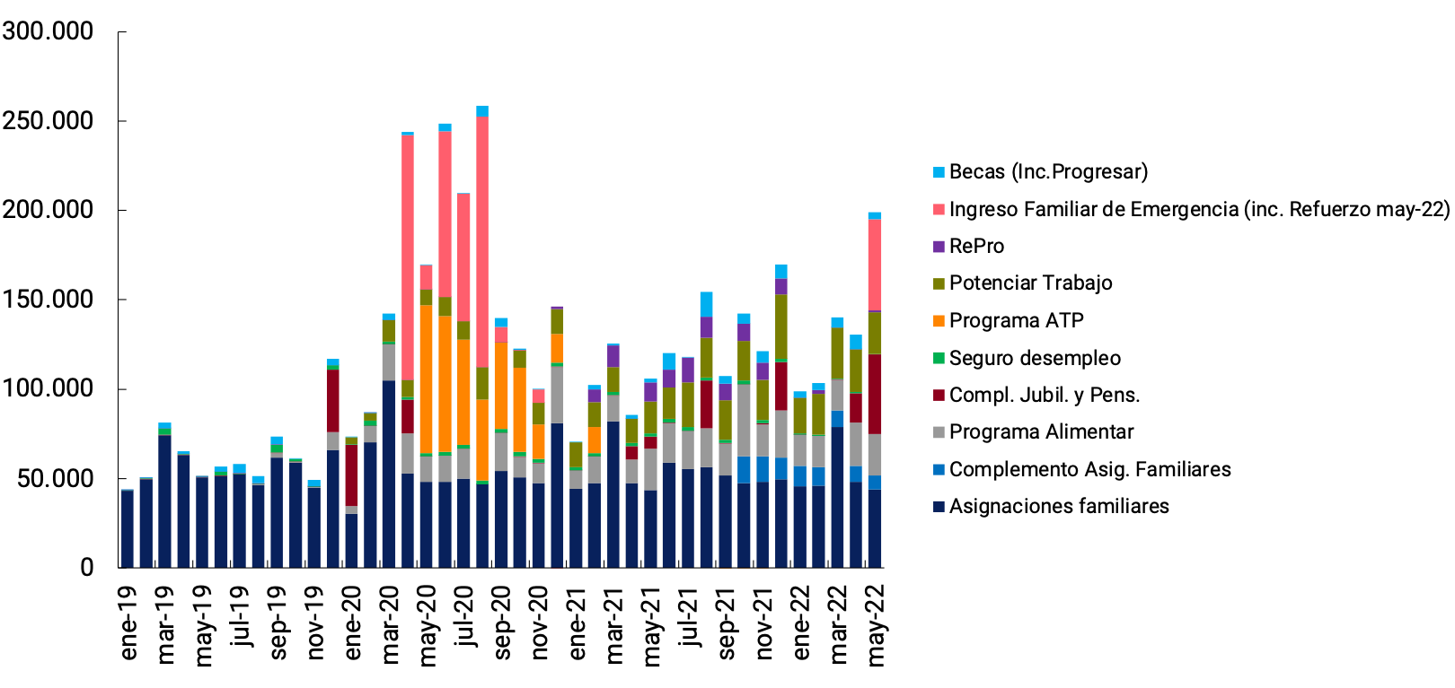 48 Según el Decreto 216/2022, el monto de la prestación del “refuerzo de ingresos” será de $18.000 a realizarse en dos pagos de $9.000 en mayo y junio de 2022.