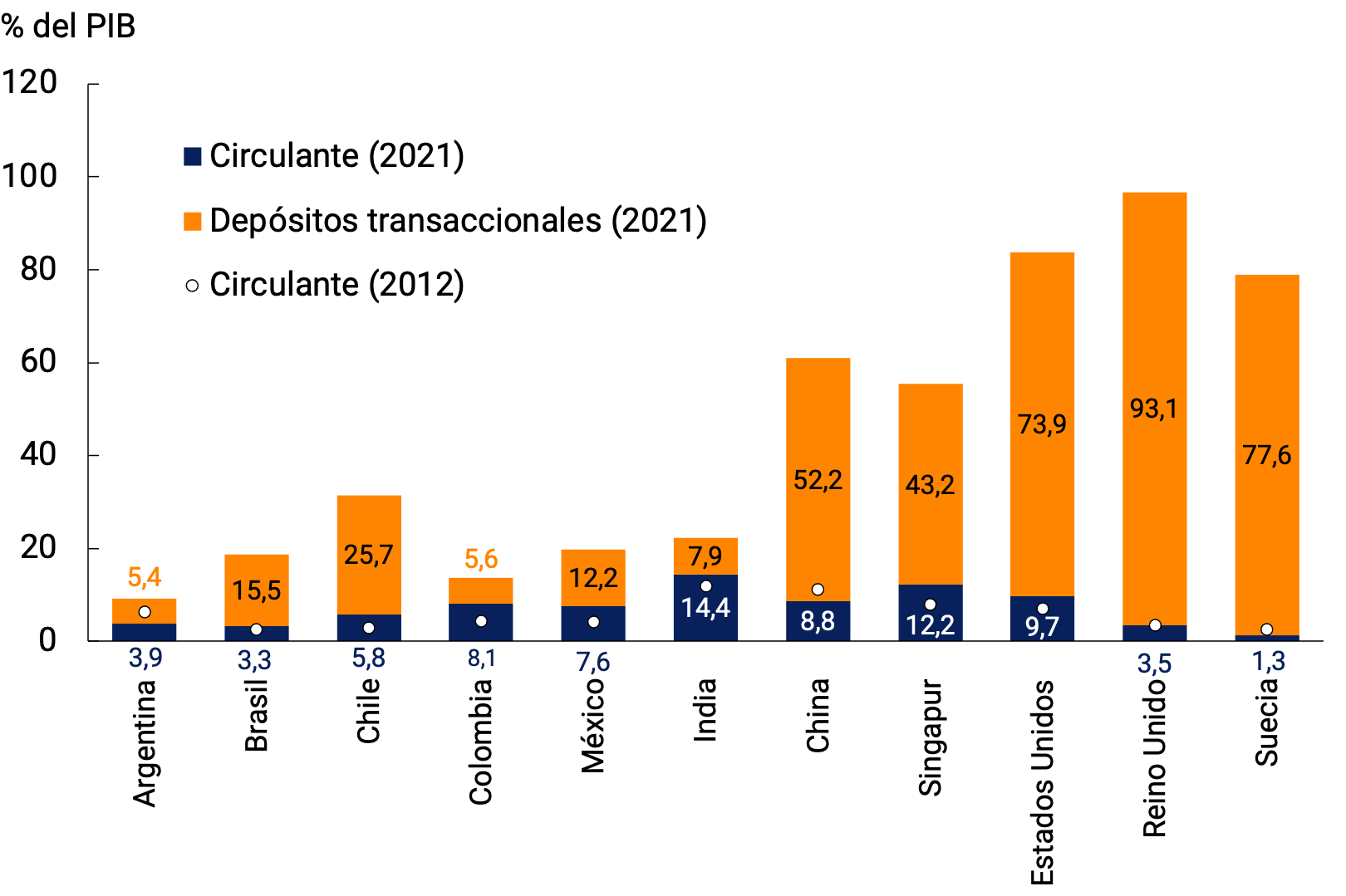 71 Por otra parte, junto a estos factores de naturaleza más estructural, cabe tener en cuenta que en un contexto signado por la incertidumbre provocada por la pandemia la demanda precautoria de efectivo ha tendido a aumentar coyunturalmente en el último período, incluso en las economías avanzadas. En estas últimas, la convivencia entre un menor uso transaccional del efectivo y una mayor demanda del mismo por motivos de atesoramiento —algo que en la literatura ha sido denominado la “paradoja de los billetes”— es un fenómeno que ya venía verificándose como consecuencia del menor costo de oportunidad de las tenencias de circulante asociado a la vigencia de muy reducidas tasas de interés nominales en el período de las post crisis financiera global.