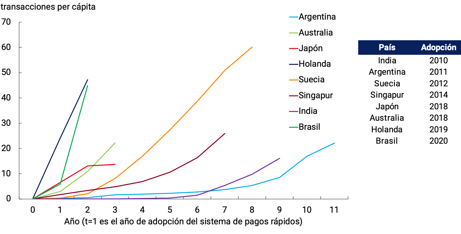 72 Esta no es necesariamente la situación en todos los casos. Por ejemplo, tal como se menciona en la nota al pie de página 2, los niveles de acceso financiero (medidos como número de cuentas bancarias y de pago con relación al total de población adulta) son actualmente muy elevados en Brasil y en nuestro país. Sin embargo, pese a esa elevada cobertura, en algunas circunstancias el desconocimiento respecto de su existencia o de sus condiciones de uso implican una baja utilización efectiva de esos medios digitales.