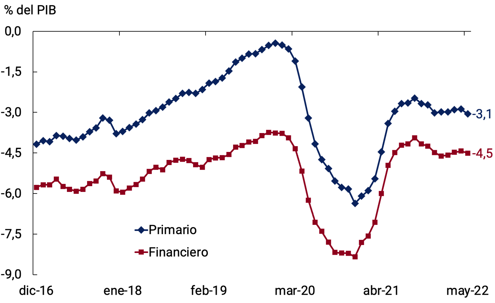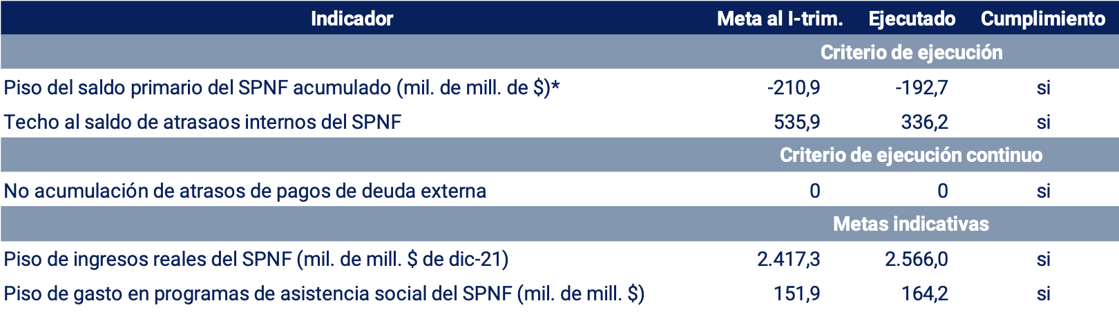24 Se trata de reaperturas de instrumentos financieros ligados a la inflación emitidos originalmente en períodos previos cuyo valor efectivo supera al valor nominal al momento de la colocación. De acuerdo con lo informado por el Ministerio de Economía, a los fines del cumplimiento de la meta fiscal de déficit primario del SPNF de 2,5% del PIB, se establecerá un límite anual para el cómputo de los ingresos provenientes de las rentas de la propiedad vinculadas a las emisiones primarias de títulos públicos equivalente al 0,3% del PIB (una magnitud similar a la registrada en ese concepto durante 2021).