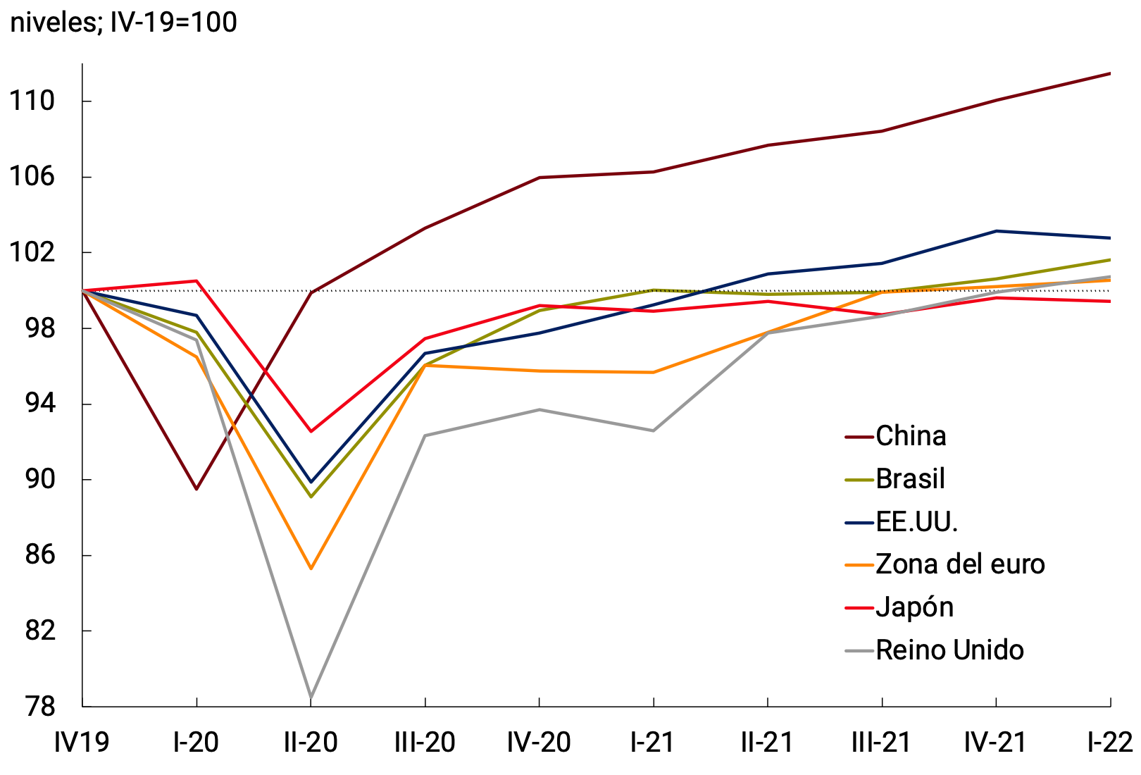 Gráfico 2.3 | Evolución del PIB de países seleccionados (PIB real sin estacionalidad)