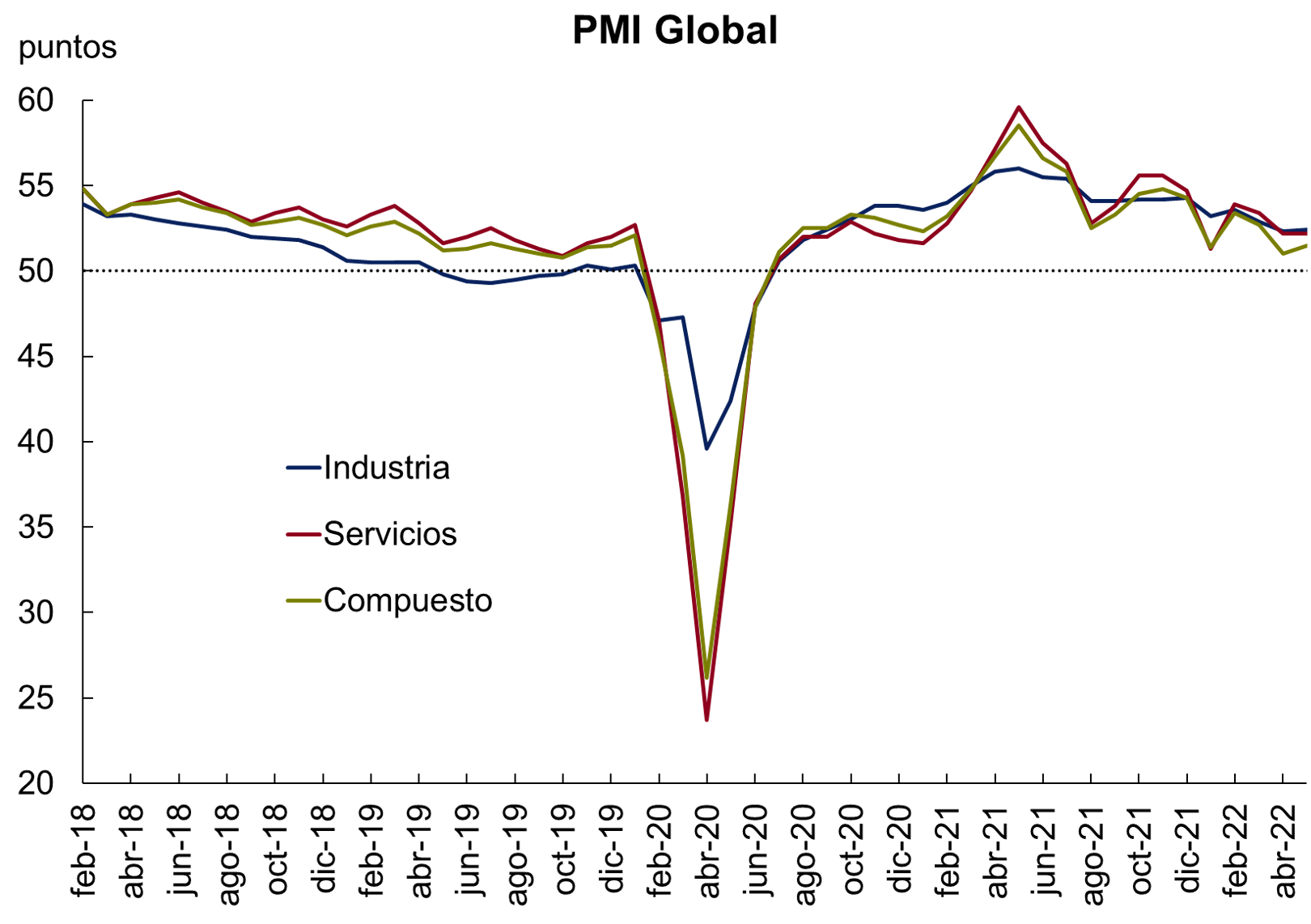 PMI: Purchasing Managers’ Index. Índice de encuestas a gerentes de compras.