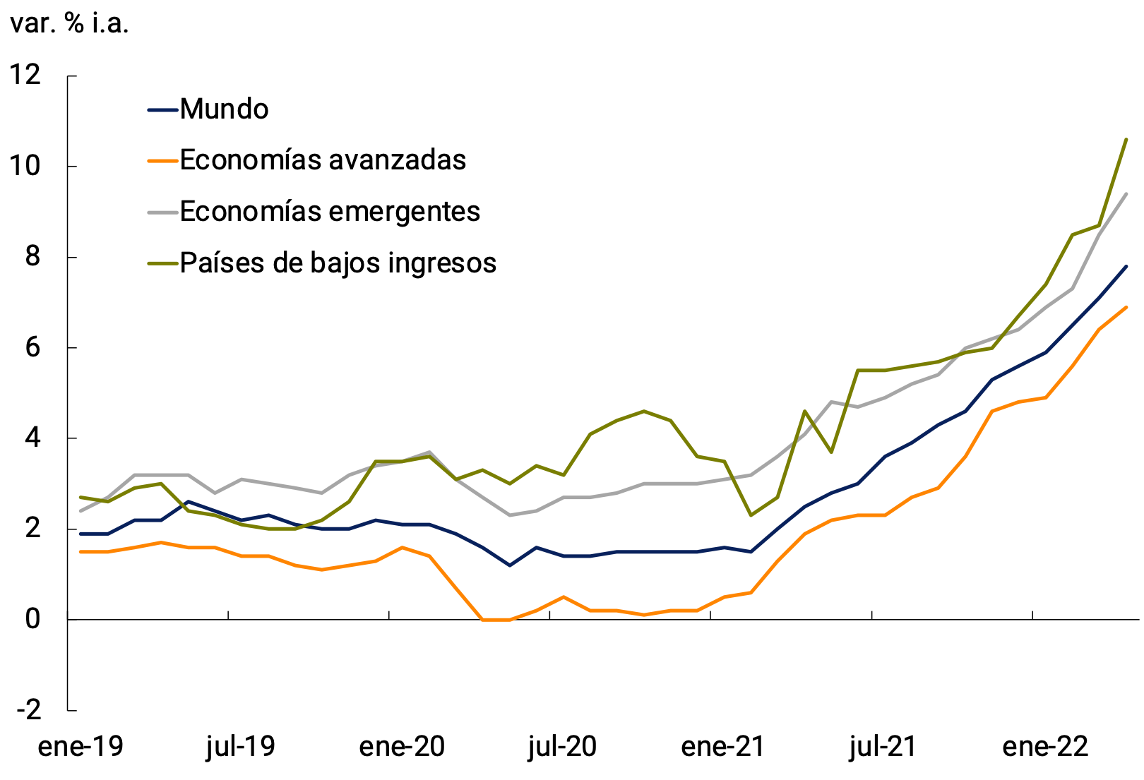 Gráfico 2.5 | Tasa de inflación por grupo de países y expectativas de inflación