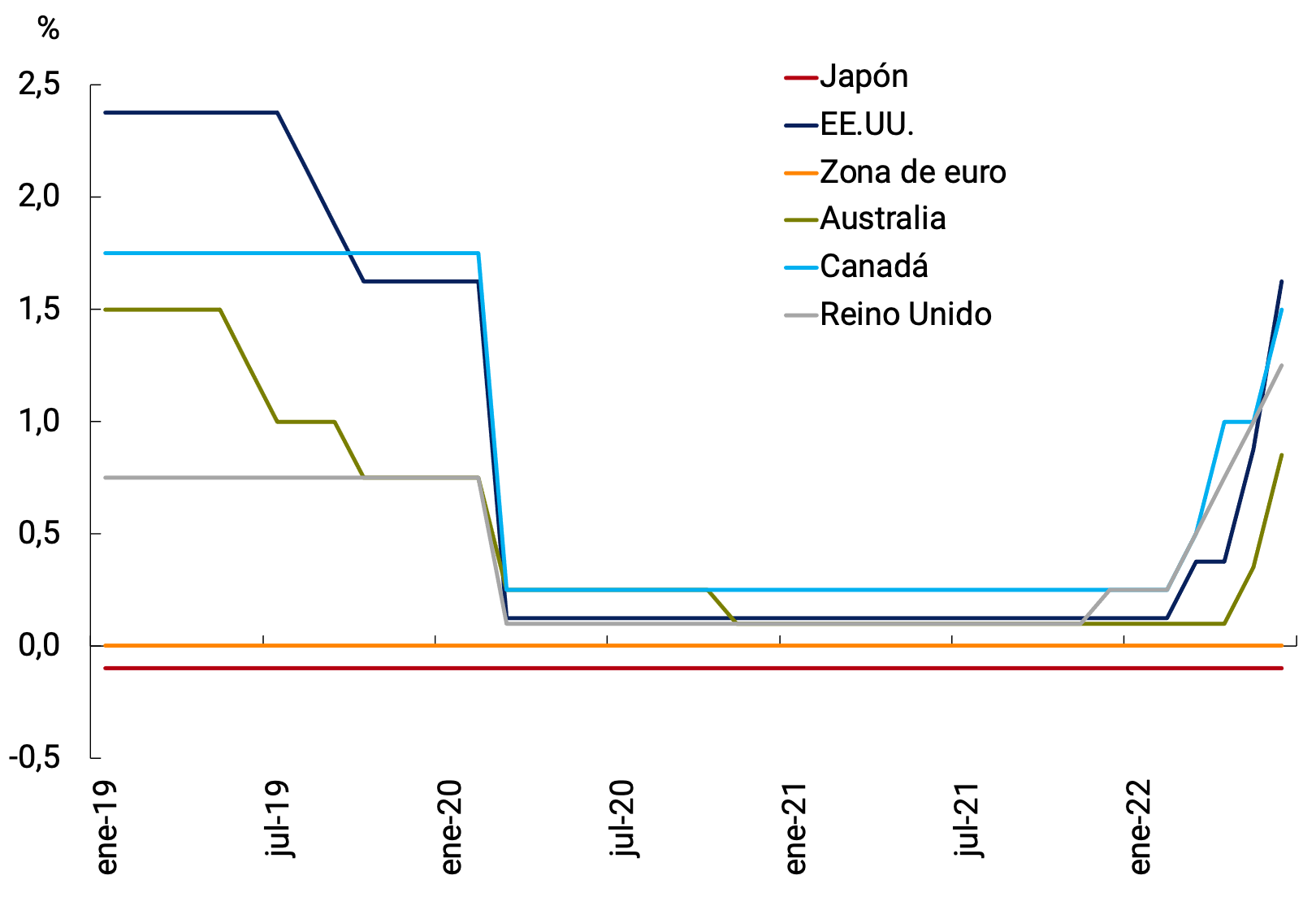 2.3. Los bancos centrales toman medidas contractivas a un ritmo sin precedente en las últimas décadas, frente a la inflación creciente