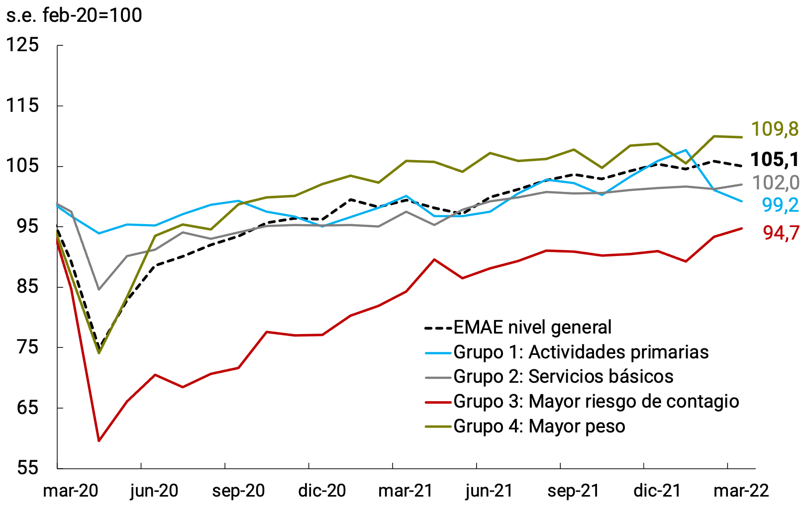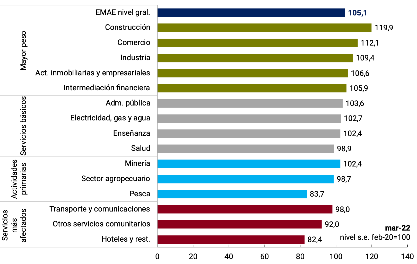 Gráfico 3.4 | Recuperación postpandemia de la actividad económica sectorial