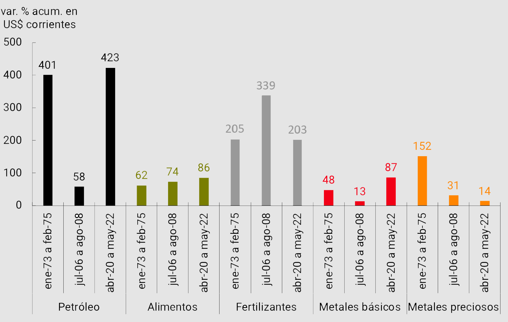 2.5. Siguen subiendo los precios de las materias primas, impactando las monedas de sus exportadores