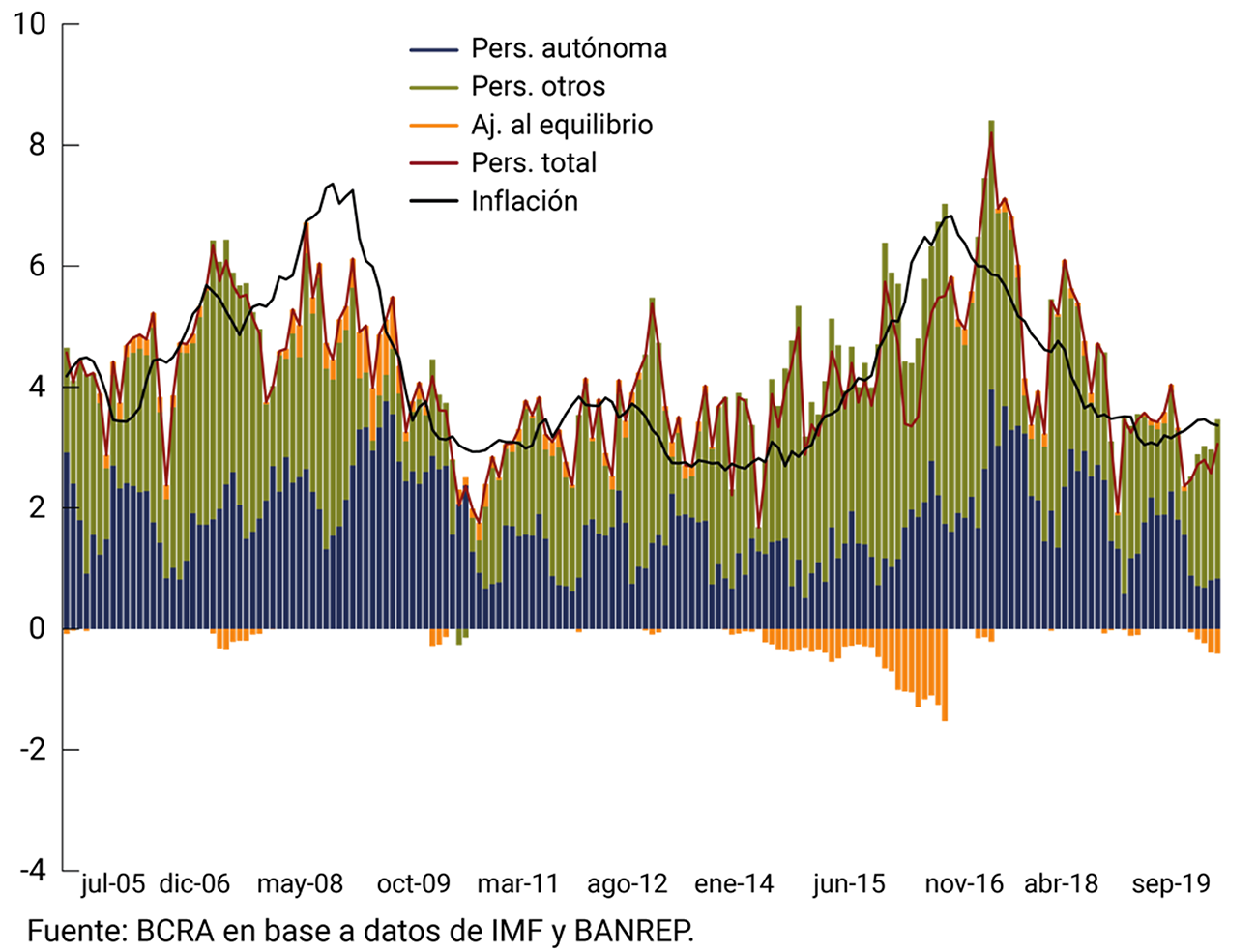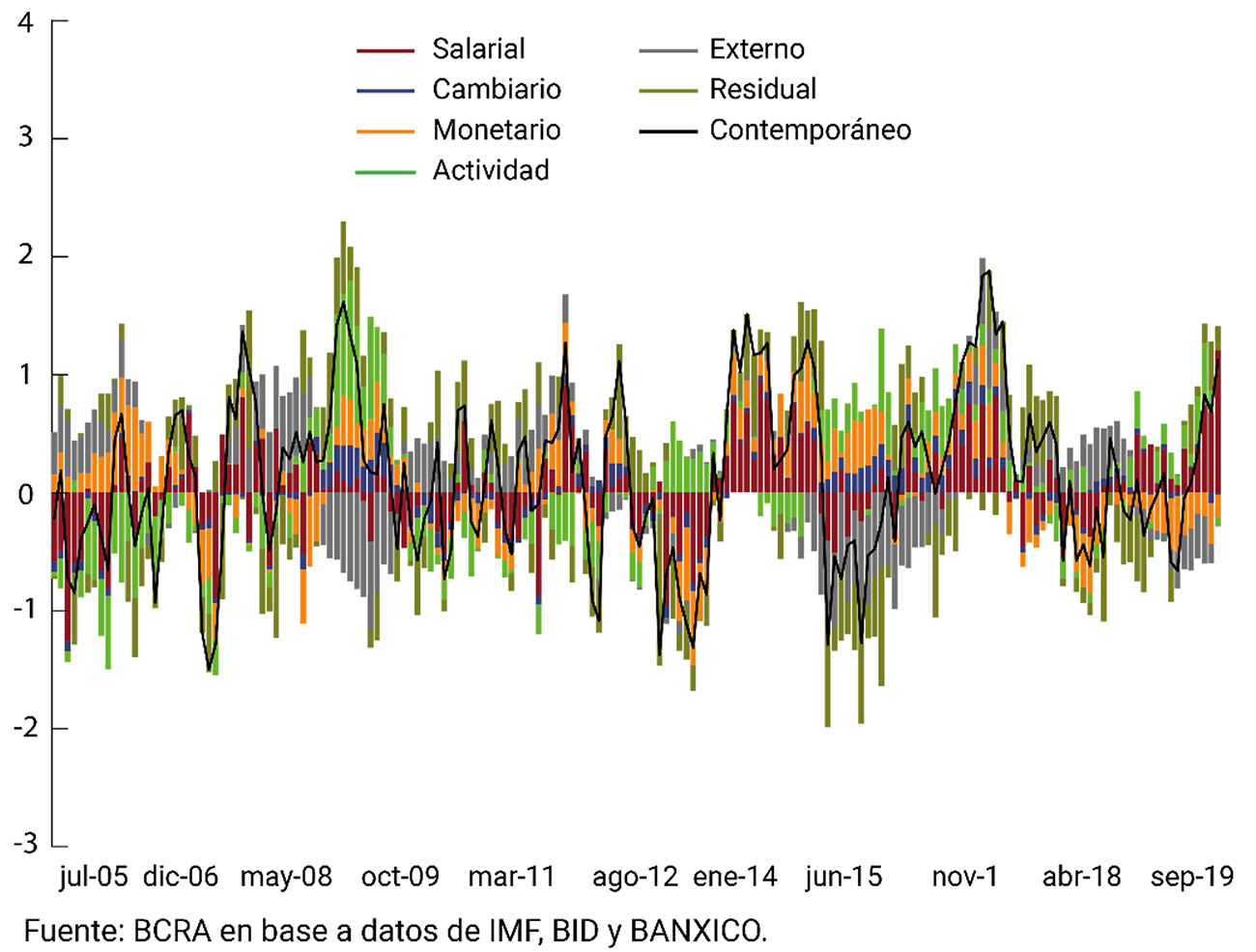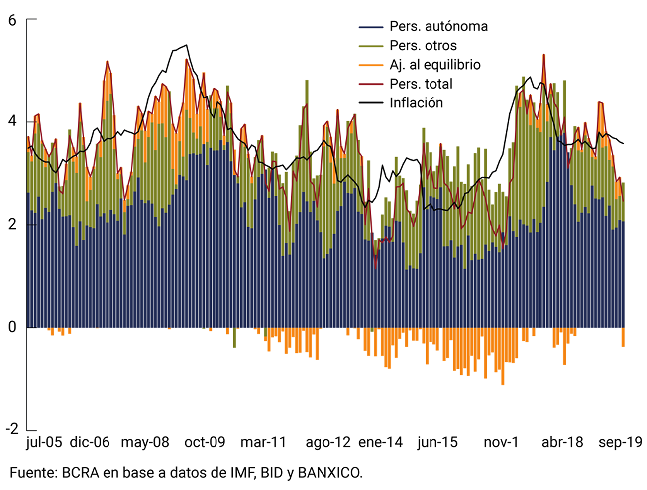 1. Descomposición de la dinámica de corto plazo de la inflación en Latinoamérica