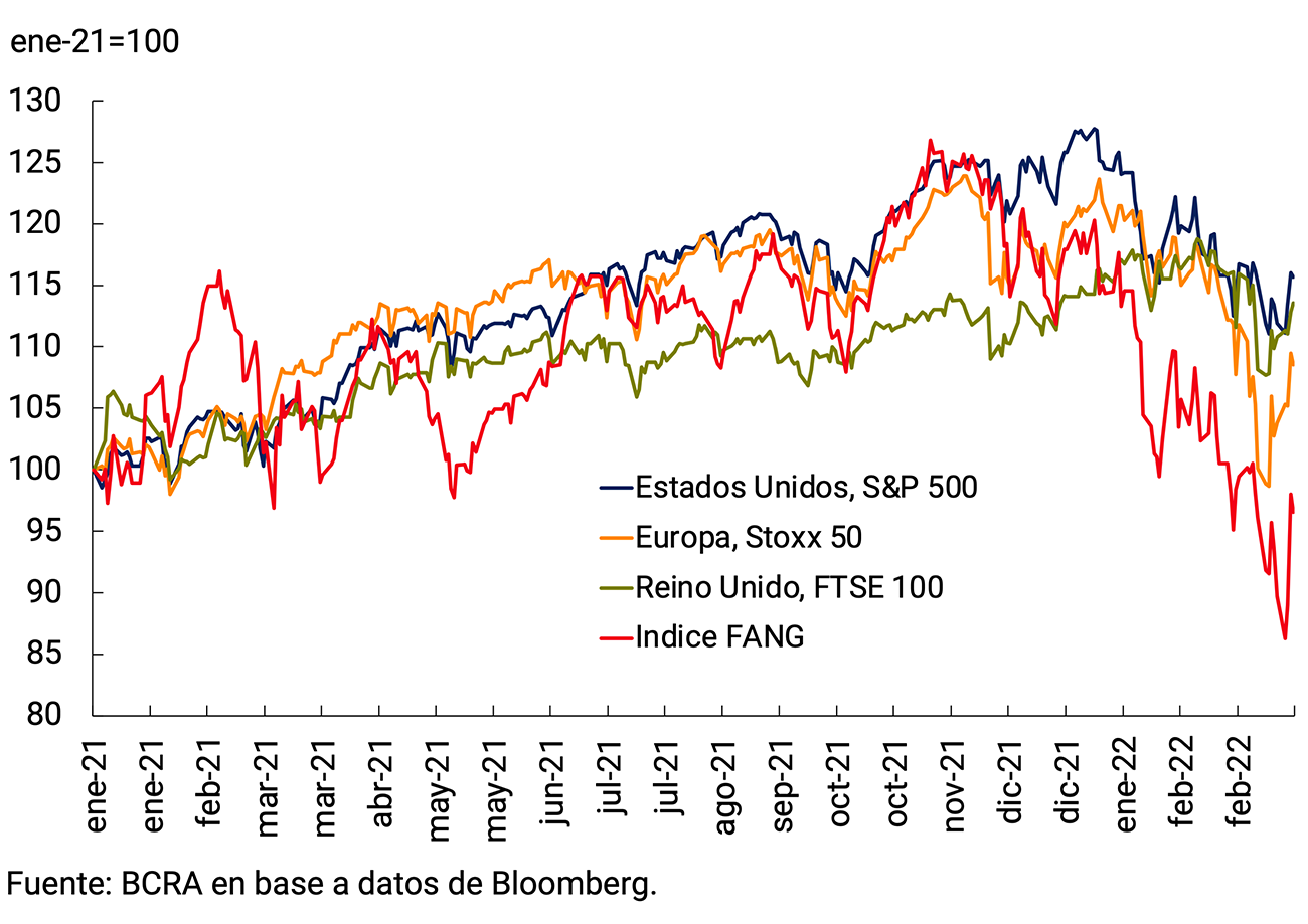 El escenario internacional se ha vuelto más incierto en las últimas semanas. Si bien la economía global cerró el año 2021 con una expansión anual del Producto del 5,7%, en los primeros meses de 2022 impactaron sobre el dinamismo de la actividad una nueva ola de la pandemia y, más recientemente, el conflicto bélico entre Rusia y Ucrania. Este último acontecimiento elevó la incertidumbre respecto a las perspectivas futuras de los precios de las materias primas que exporta e importa nuestro país. Hasta el momento, la suba de los precios de la energía y del resto de las materias primas impulsó una aceleración de la inflación en las economías avanzadas, lo que dio lugar a que los bancos centrales de estas economías consideraran darle un sesgo más contractivo a su política monetaria. Una contracción monetaria más pronunciada impactaría sobre los países en desarrollo bajo la forma de condiciones financieras más ajustadas, salidas de capitales y eventualmente menor crecimiento.
