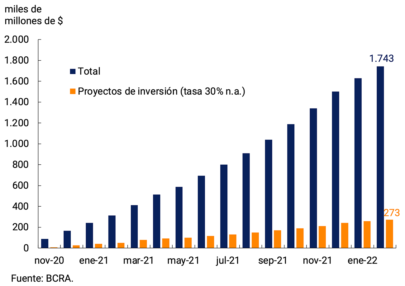 La continuidad del proceso de normalización de las actividades de los sectores productivos le permitió al BCRA continuar con su política de crédito focalizada en los sectores más rezagados y en el impulso al desarrollo productivo. Durante 2022 el Banco Central continuará estimulando la oferta de crédito al sector privado. La Línea de Financiamiento a la Inversión Productiva (LFIP) seguirá siendo el principal vehículo para canalizar el crédito productivo a las MiPyMEs bajo condiciones financieras favorables.