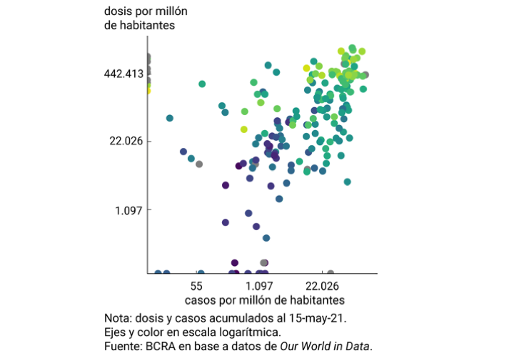 Entre los factores que operan a favor respecto del año pasado se encuentran en primer lugar, el mayor conocimiento sobre la contagiosidad del coronavirus, el aprendizaje sobre la administración de la pandemia, el avance de la campaña de vacunación y la adaptabilidad de los individuos y de los sectores económicos a la operatoria con los protocolos sanitarios y la virtualidad. En el mismo sentido contribuyen el crecimiento global, la mayor liquidez internacional y los elevados precios de las materias primas respecto a un año atrás (ver Capítulo 2. Contexto Internacional).
