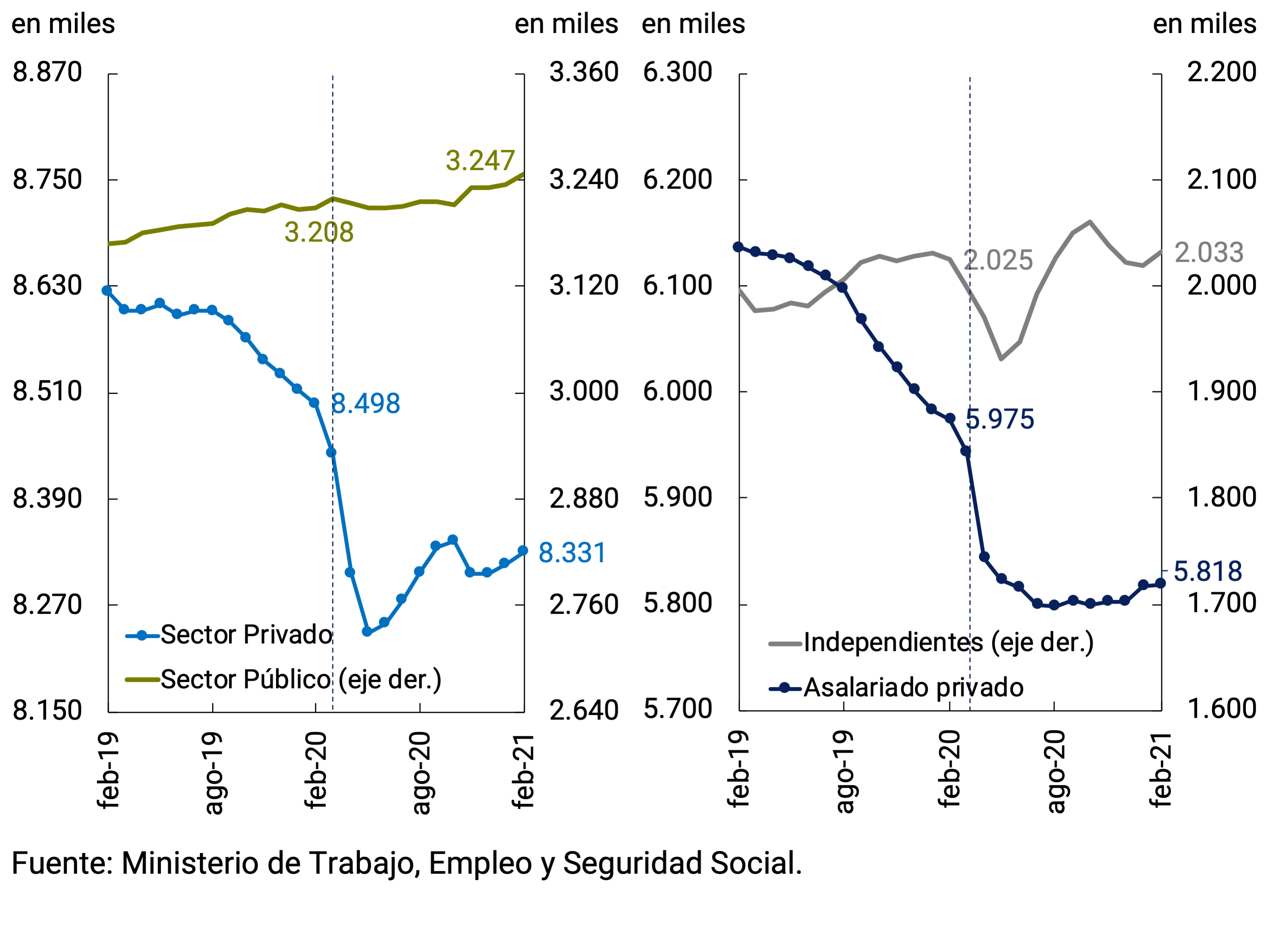 En un contexto de recuperación económica previo al rebrote de COVID-19, que implicó el relanzamiento de políticas sanitarias, laborales, y de ingresos de la población, el mercado laboral mostró tendencias mixtas. El empleo asalariado registrado mostró variaciones acotadas sobre el final de 2020 y comienzo de 2021, mientras que dentro del mercado informal (tanto asalariado como no asalariado) se destacaron dinámicas positivas que traccionaron una paulatina recuperación del empleo.