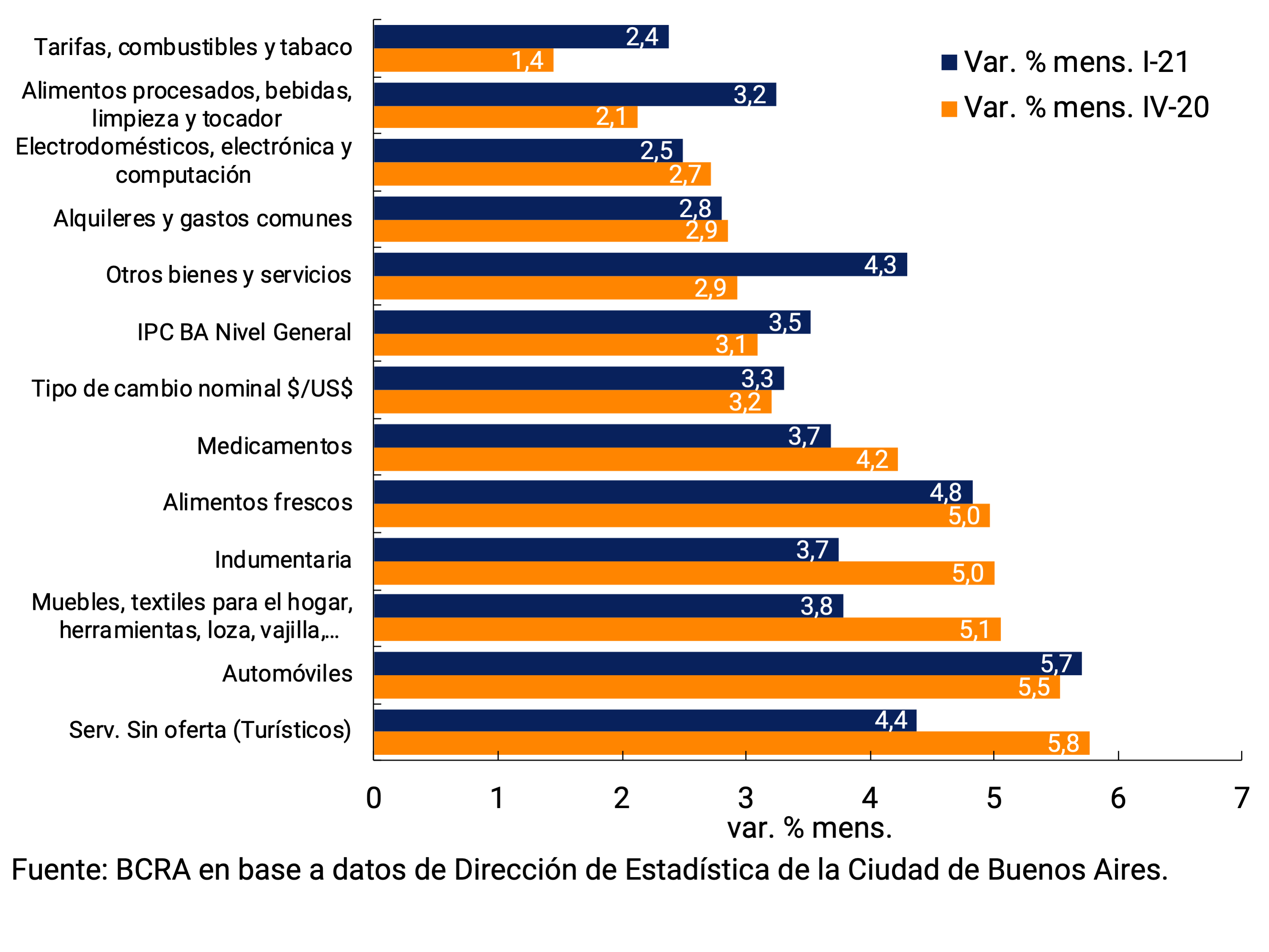 41 En el caso del Índice de precios al consumidor de la Ciudad de Buenos Aires (IPCBA) elaborado por la Dirección de Estadística y Censos de CABA, la ponderación de bienes y servicios en el período base es de 47%, y 53%, respectivamente. Esto representa una mayor ponderación relativa para servicios que lo observado en el IPC GBA de INDEC que, a nivel de cobertura territorial además de la CABA, abarca también el conurbano bonaerense.