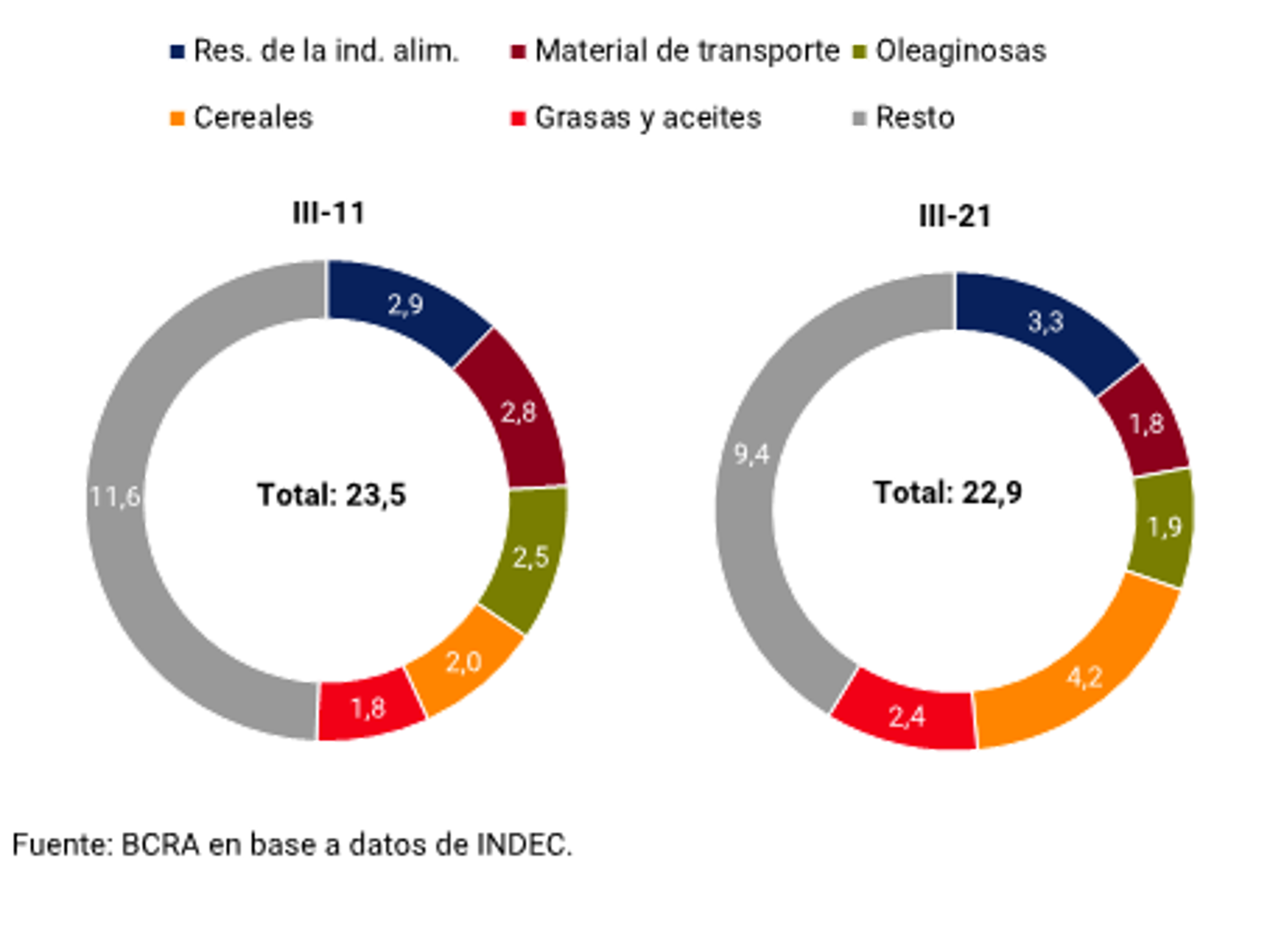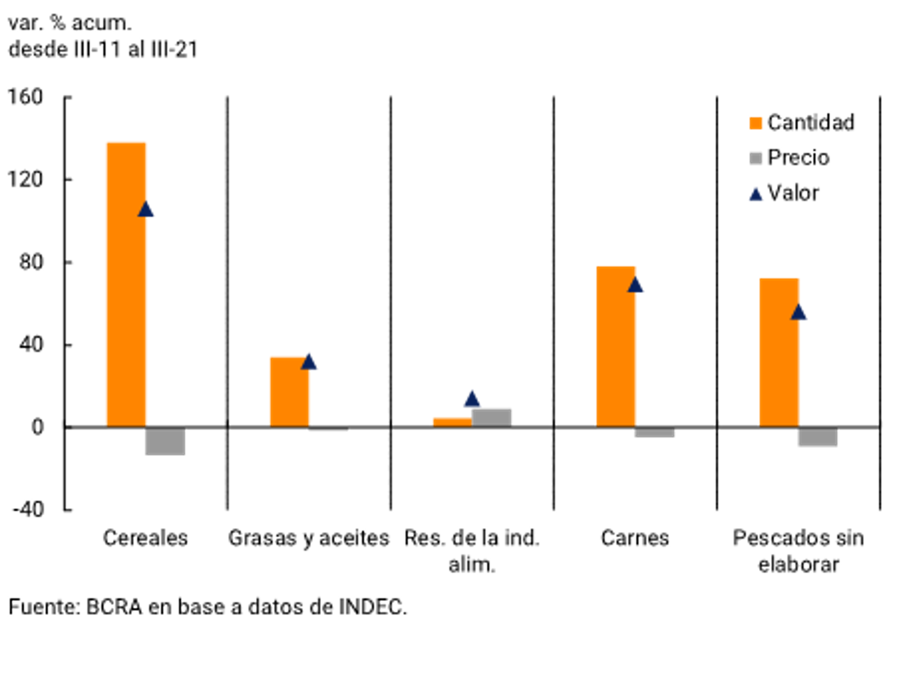 26 Se excluye de este análisis a la energía eléctrica, cuarta en el ranking de categorías que más aumentaron su peso en la canasta de exportación de Argentina debido a que no se cuenta con series de precios y cantidades.