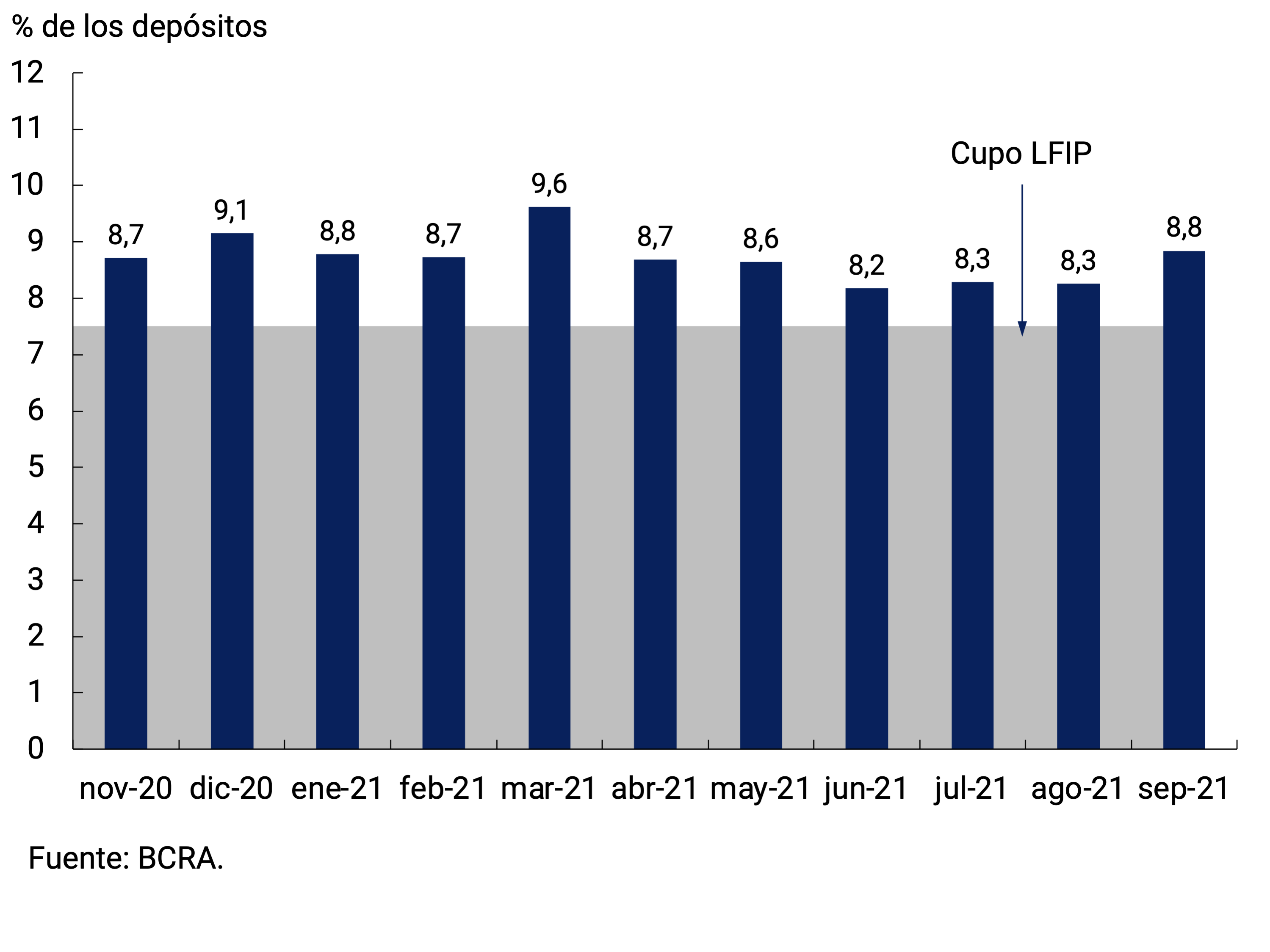 46 En esta oportunidad, calculado sobre el promedio de los depósitos del sector privado del mes de septiembre.