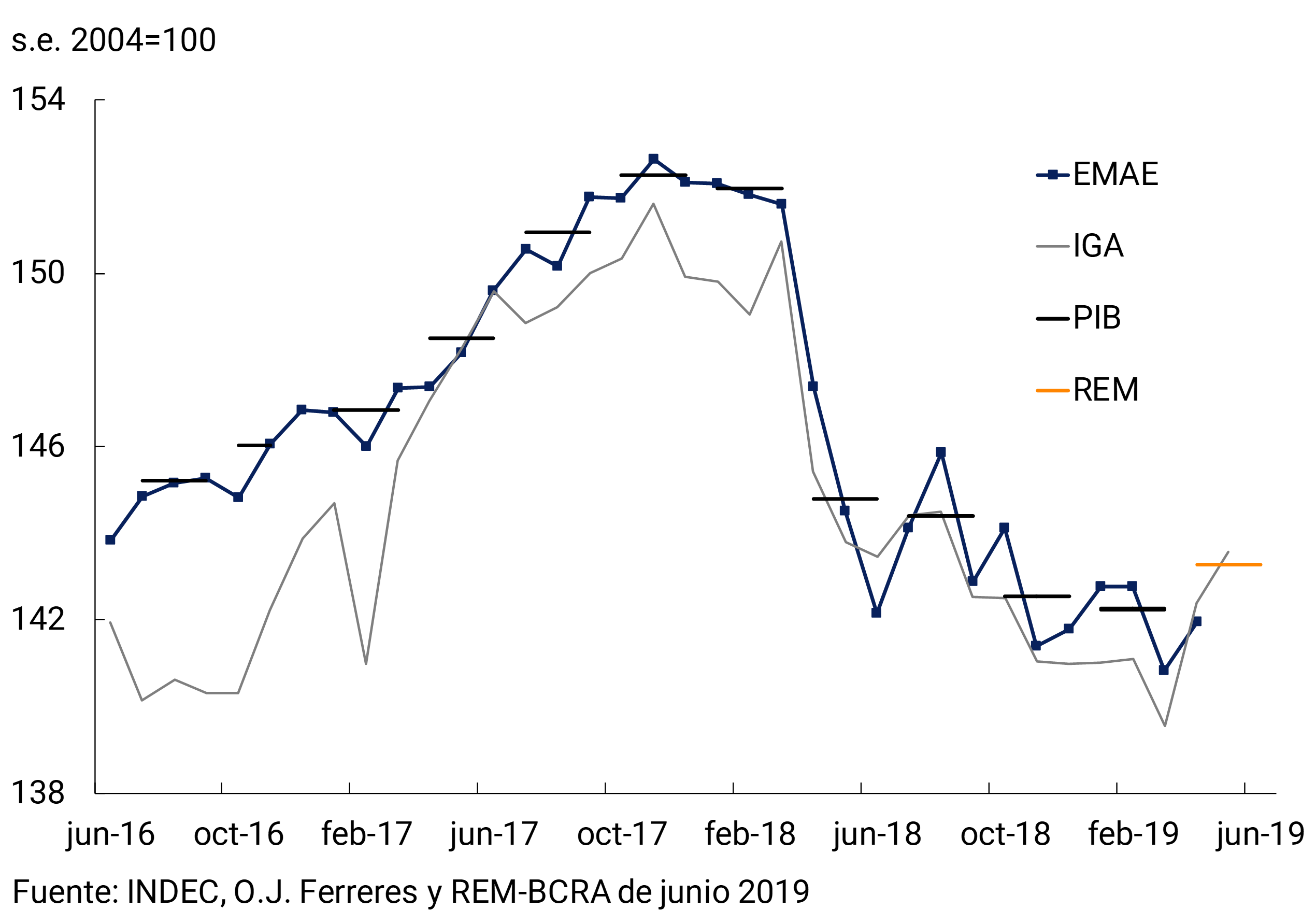 Diversos indicadores de consumo y actividad analizados en el presente IPOM vienen mostrando una recuperación desde diciembre de 2018. Se prevé que la serie sin estacionalidad del EMAE del primer trimestre de 2019 se pueda ir revisando al alza con la incorporación de nuevas observaciones a la serie original.