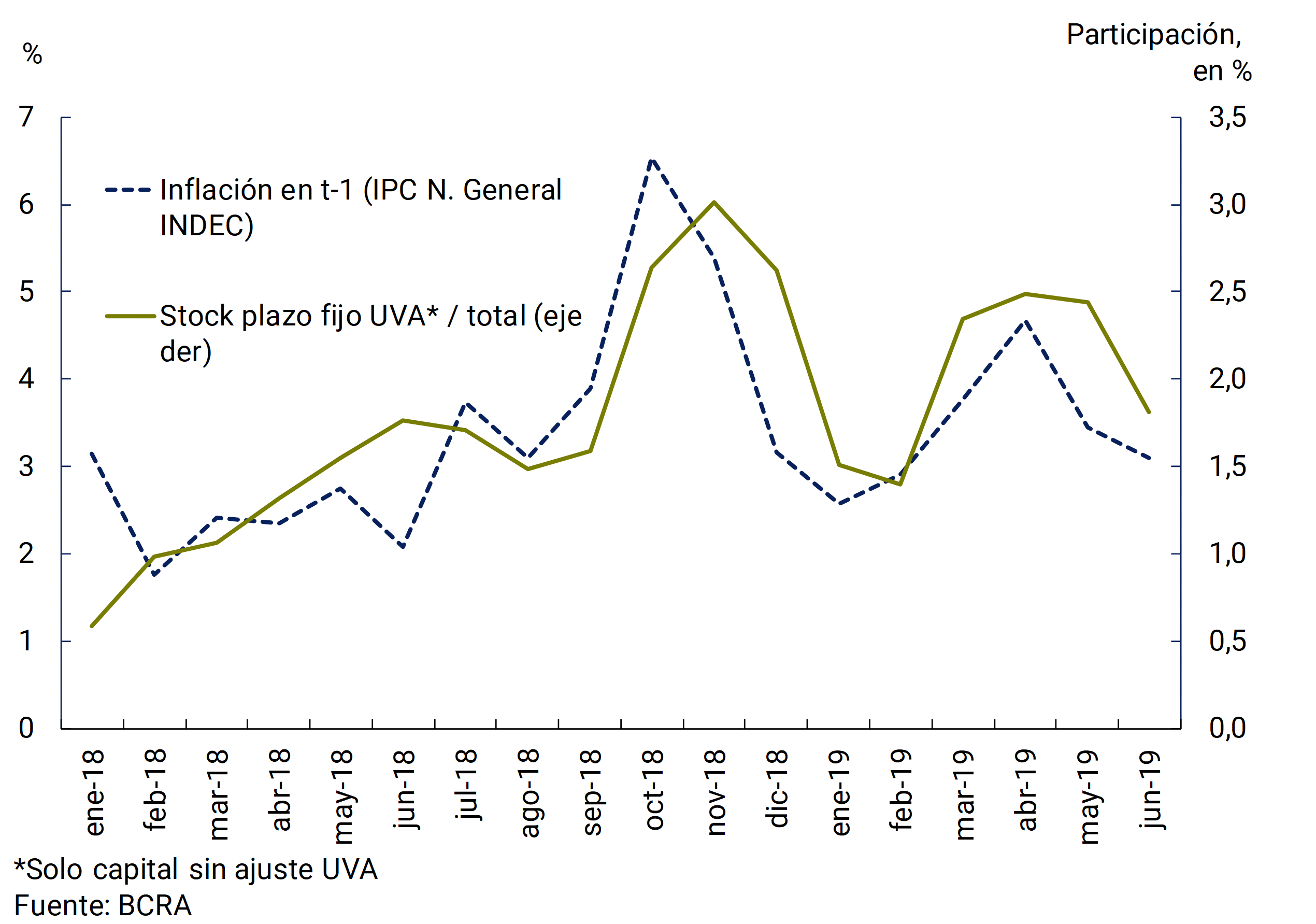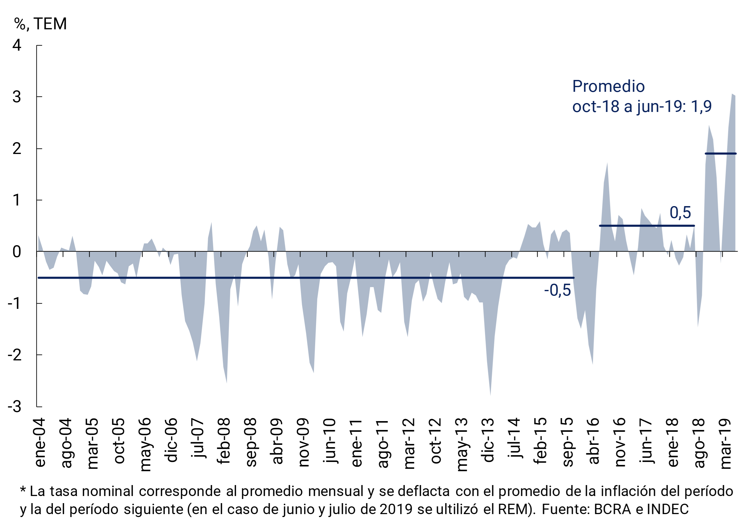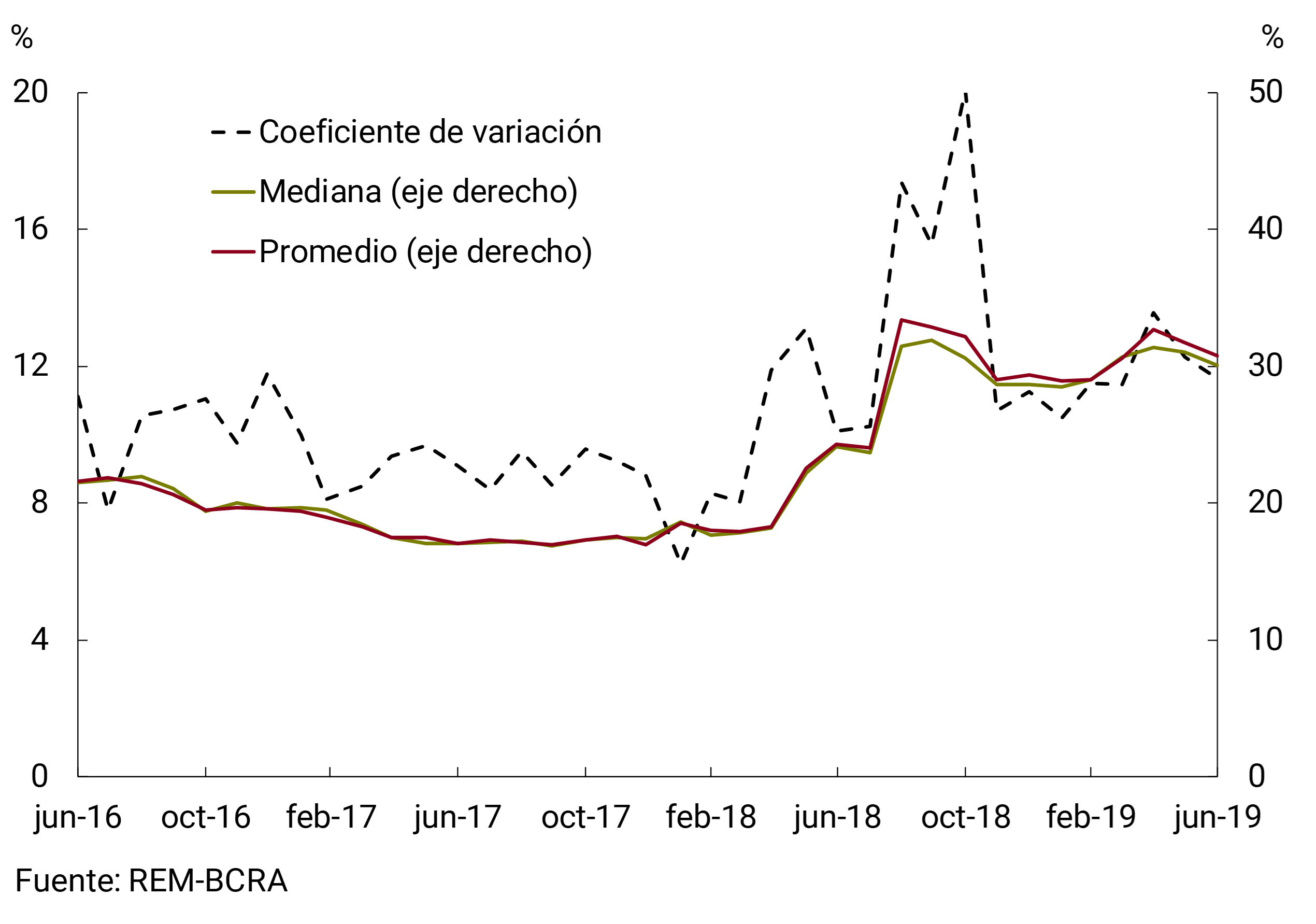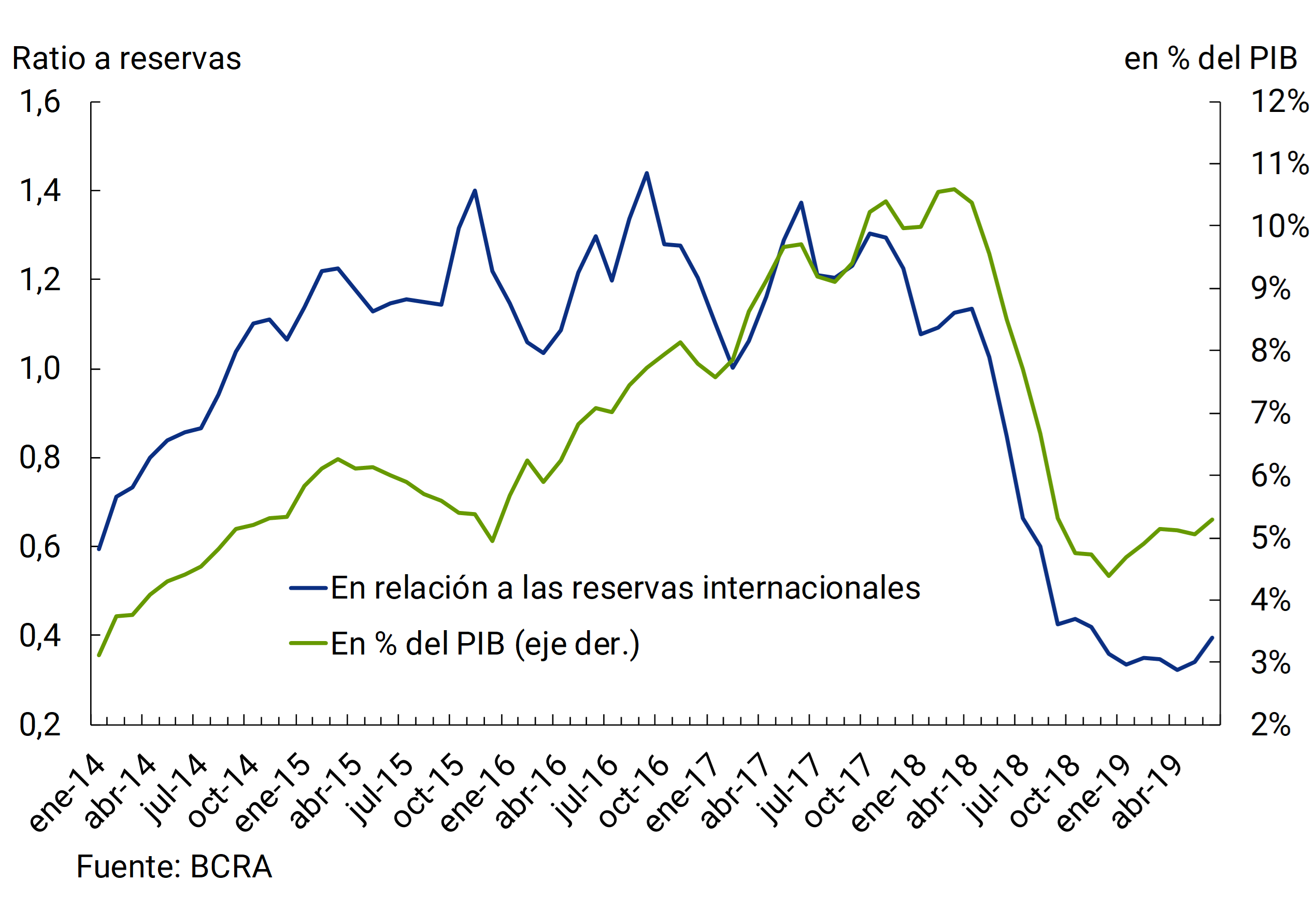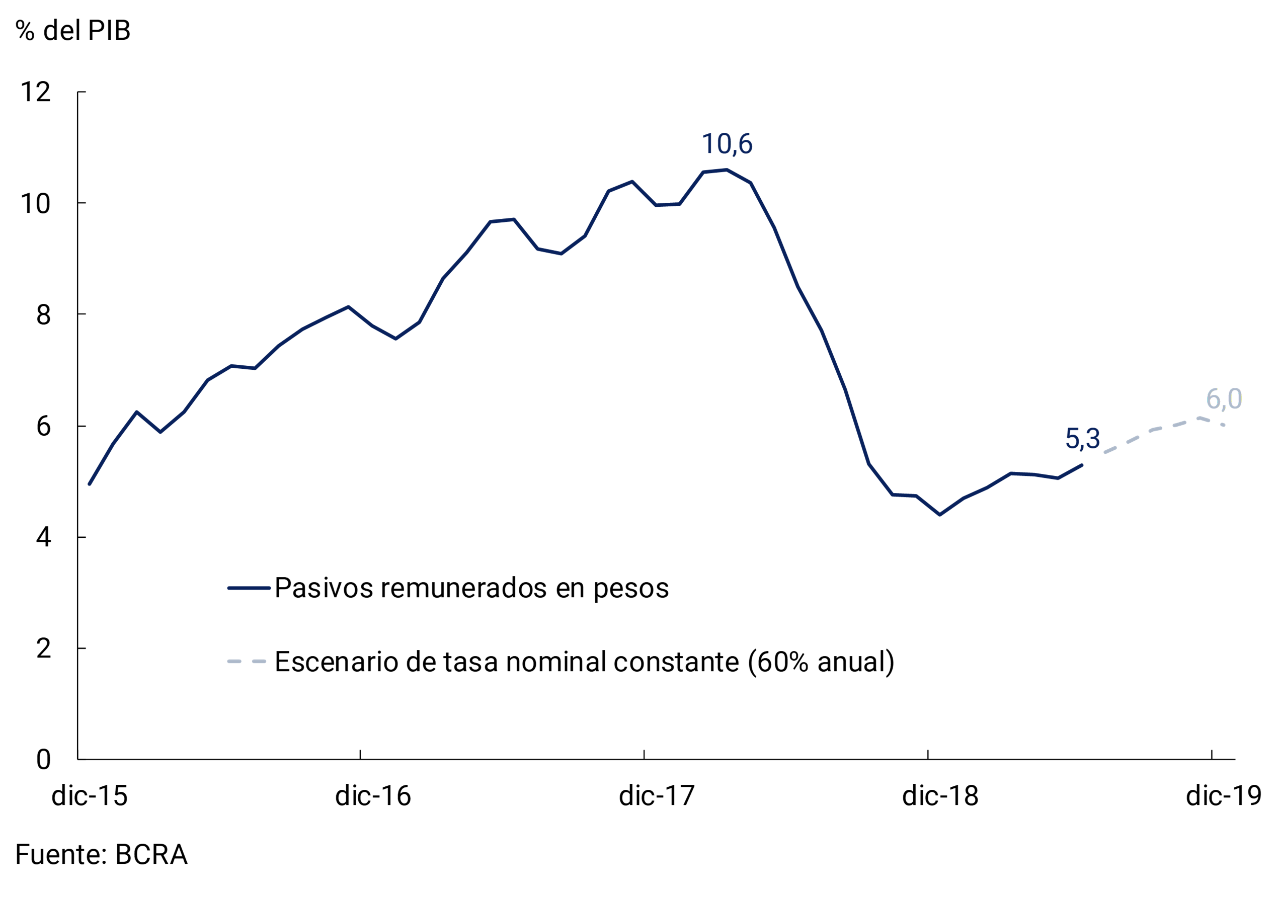 No obstante, los procesos de desinflación suelen ser graduales y no lineales, dado que la política monetaria opera con rezagos, y la inflación tiene también un componente inercial. Este componente inercial se refuerza después de más de una década de alta inflación. Así, el sesgo contractivo del esquema monetario se mantendrá a lo largo de 2019, y se espera que la tasa de interés de referencia baje gradualmente y sólo en la medida en que disminuya la inflación. Sin embargo, esta tendencia de mediano plazo podría verse transitoriamente perturbada en caso de que se materialicen algunos de los riesgos a los que la economía está expuesta, tales como un nuevo episodio de volatilidad de las condiciones financieras globales, o la incertidumbre habitual de los procesos electorales. En el actual esquema, la tasa de interés endógena permite responder inmediatamente ante cualquier perturbación imprevista.