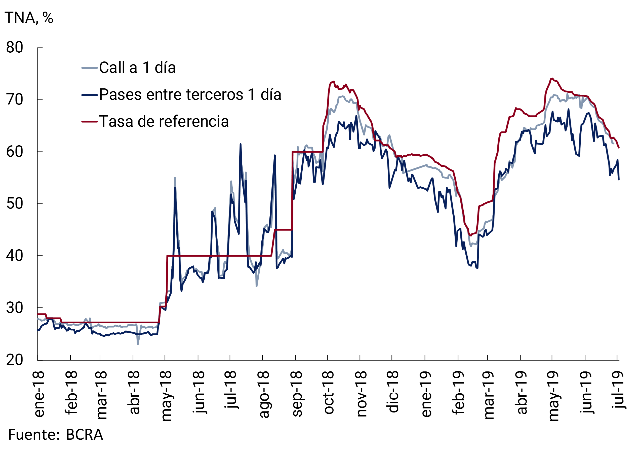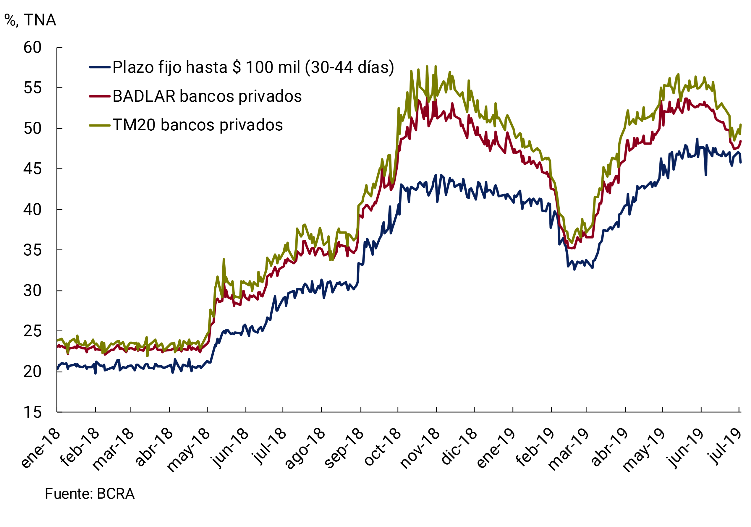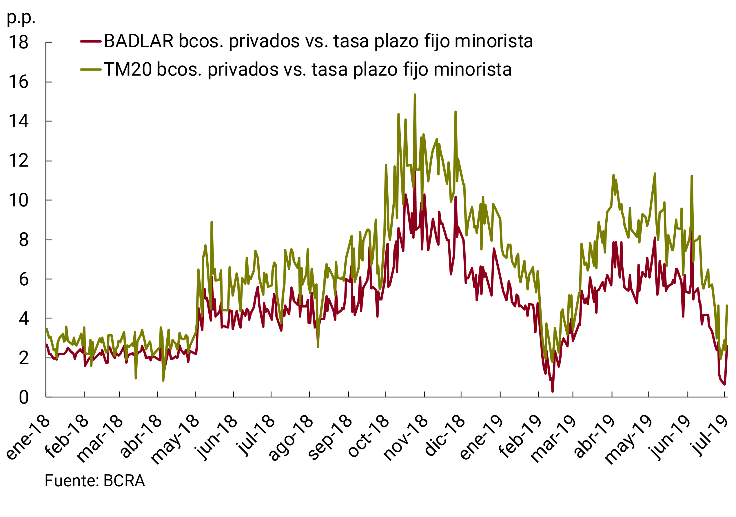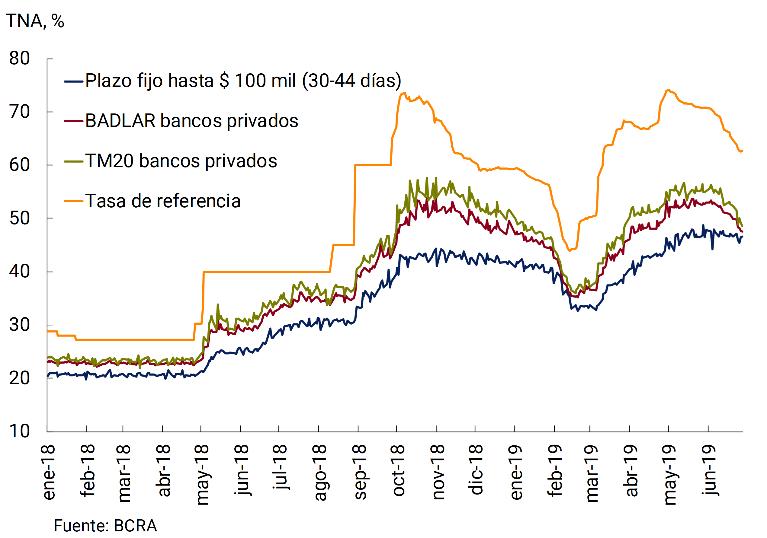 Adicionalmente, para promover la competencia entre las entidades financieras y mejorar el mecanismo de transmisión de la tasa de referencia hacia las tasas de interés que perciben los ahorristas, el Banco Central permitió que los clientes bancarios realicen depósitos a plazo fijo en pesos de manera online en cualquier entidad financiera sin necesidad de ser cliente o realizar trámites adicionales. De esta manera, las tasas de interés de plazo fijo minoristas crecieron y se acercaron a las de operaciones de mayor monto (ver apartado 5).