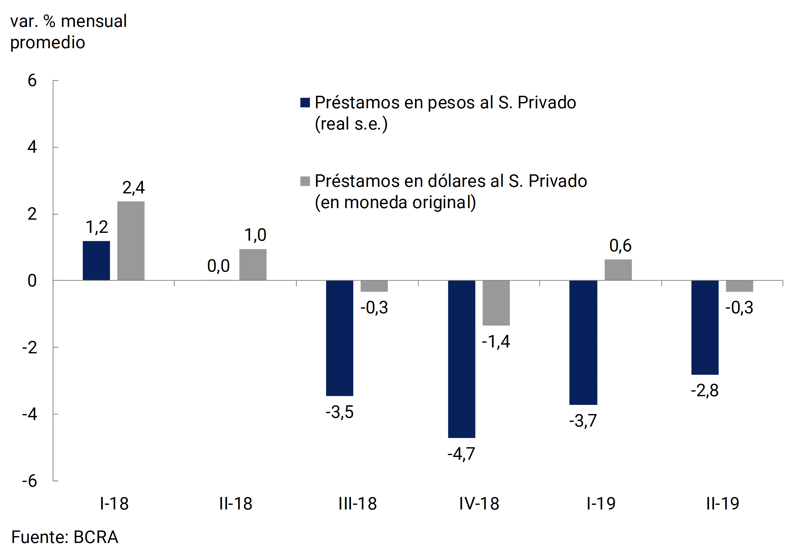 Por su parte, pese a que el CEMBI de Argentina se comportó de manera similar al índice soberano, hubo algunas colocaciones puntuales de deuda corporativa argentina en los mercados del exterior por parte de empresas de los sectores metalúrgico y energético. Las colocaciones de empresas con oferta pública en los mercados internacionales en el segundo trimestre de 2019 sumaron US$650 millones (una de las cuales se efectuó con garantía de cobros de exportaciones), mientras que en el mismo período de 2018 hubo una única colocación a fines de abril por US$500 millones.
