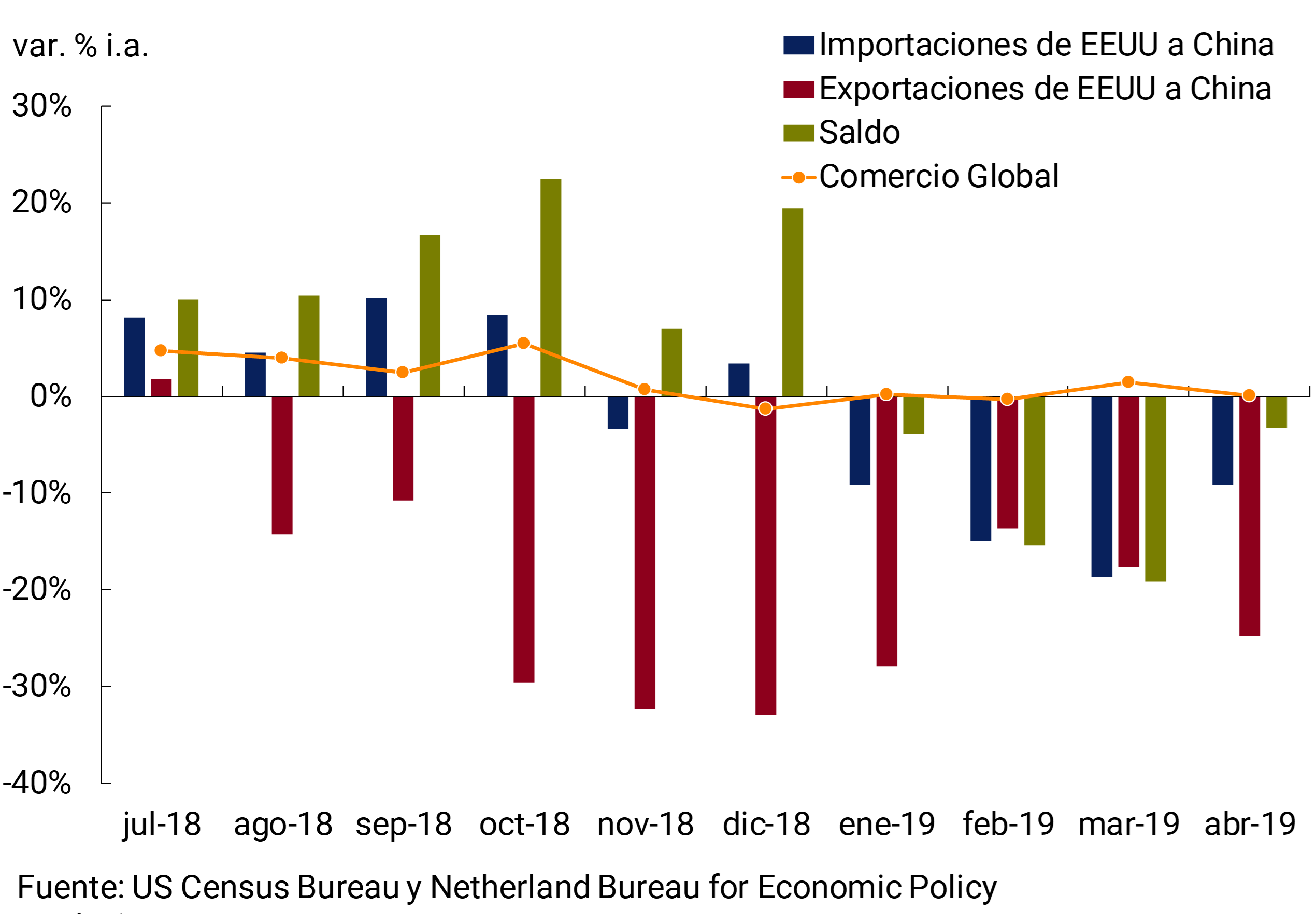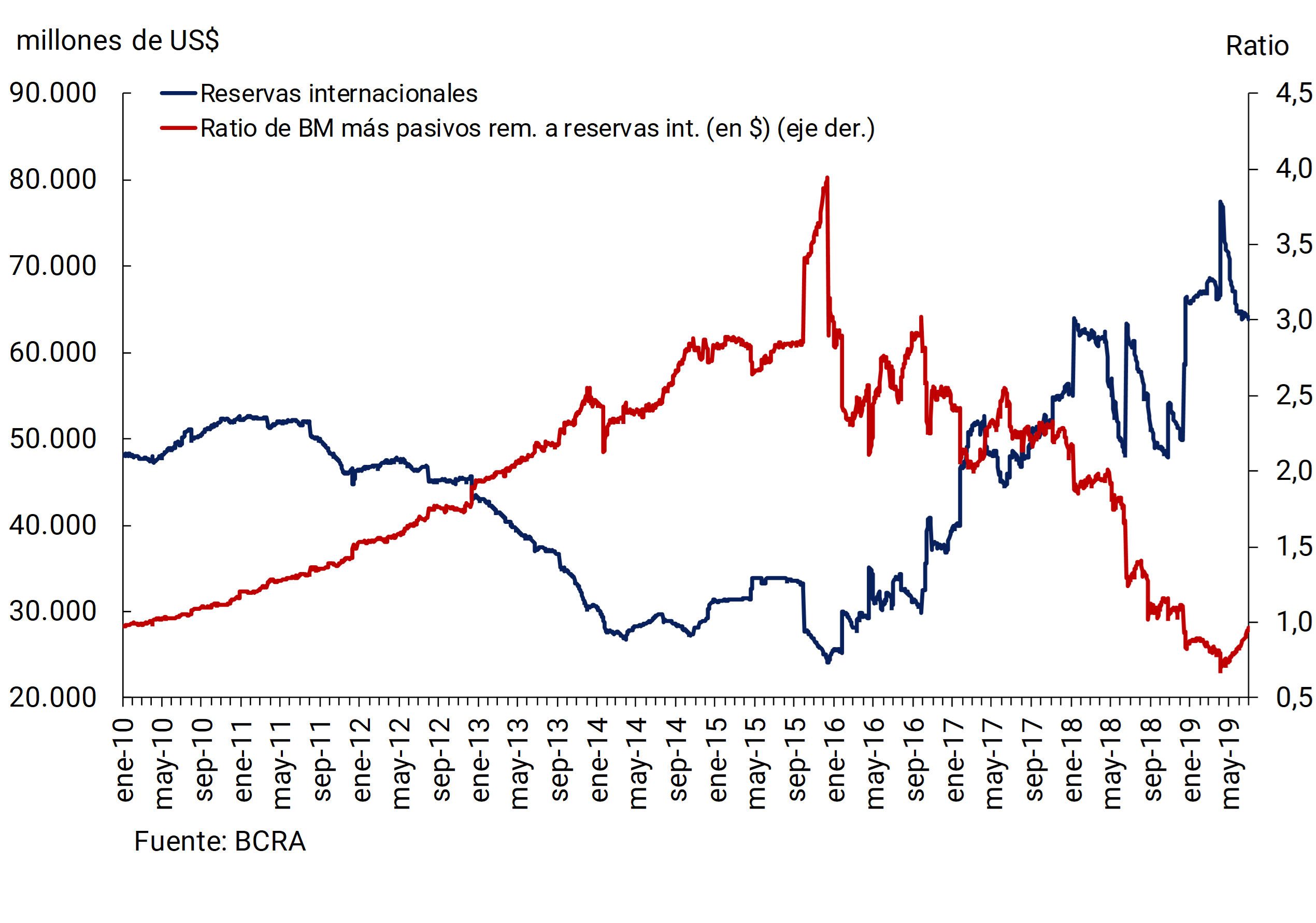 Las autoridades chinas implementaron algunas medidas de estímulo basadas en recortes impositivos y el incremento de gastos en infraestructura pública, y dejaron en suspenso las políticas de desapalancamiento del sistema financiero. En este sentido, han reducido recientemente los requisitos de encaje. A fines de mayo, ante la existencia de serios riesgos crediticios, el BPC y la comisión de regulación de bancos y seguros de China tomaron el control del Banco Baoshang, anunciando una reestructuración tendiente a sanear su balance. La última vez que las autoridades chinas tomaron una medida de estas características fue en 1998. En este contexto, la autoridad monetaria ha estado inyectando liquidez mediante operaciones de mercado abierto, y podría llegar a reducir nuevamente los requisitos de encajes, a fin de evitar problemas en otras entidades financieras.