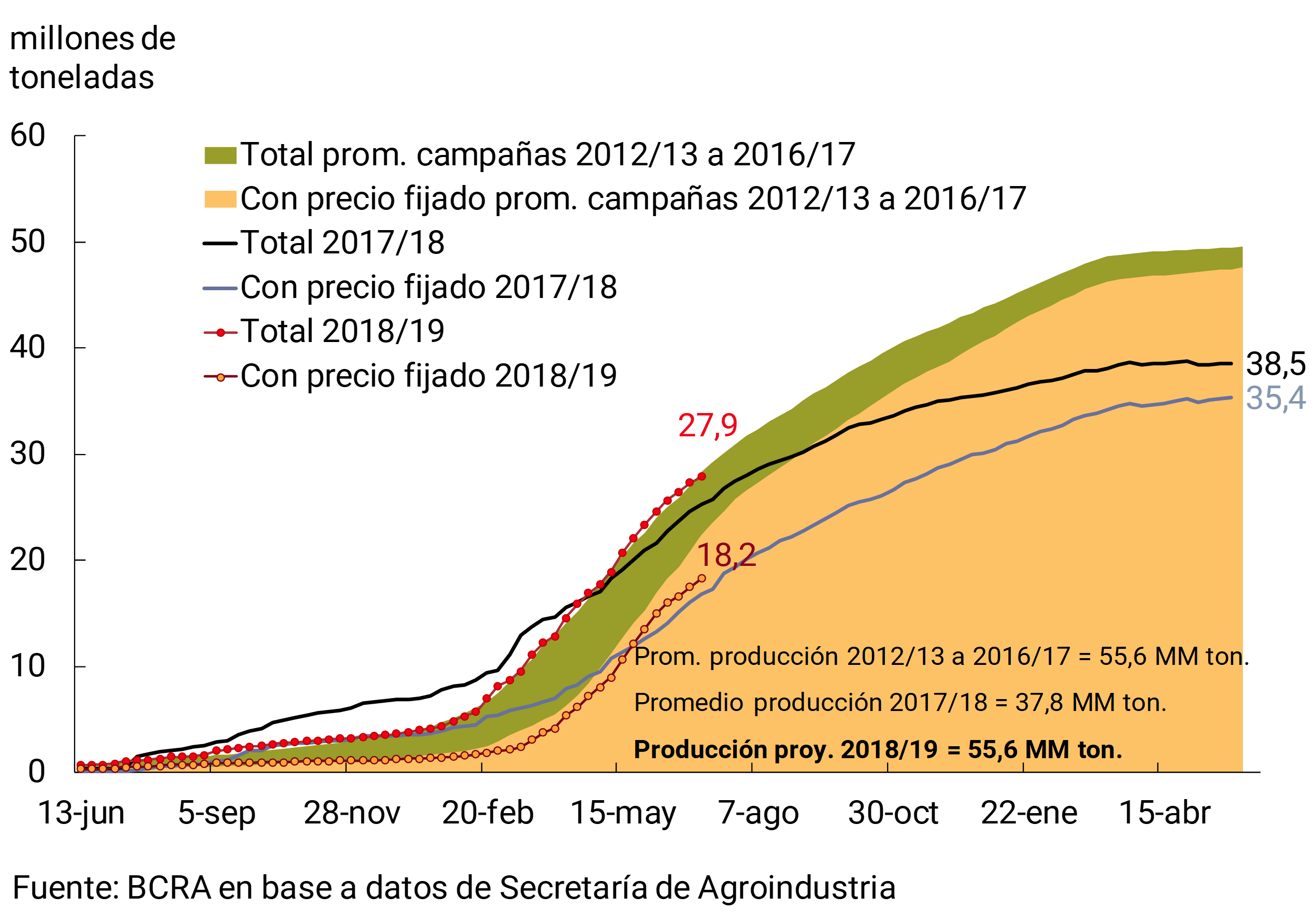 Las medidas adoptadas y el mantenimiento de una política monetaria contractiva, en un contexto de mejores condiciones internacionales, estabilizaron el mercado cambiario y las expectativas de inflación, permitiendo que la inflación retome su sendero decreciente desde abril. Esto a su vez propició, en conjunto con una serie de medidas que implementó el Poder ejecutivo para apuntalar el gasto de las familias, que la actividad económica continuara con la recuperación iniciada en diciembre.