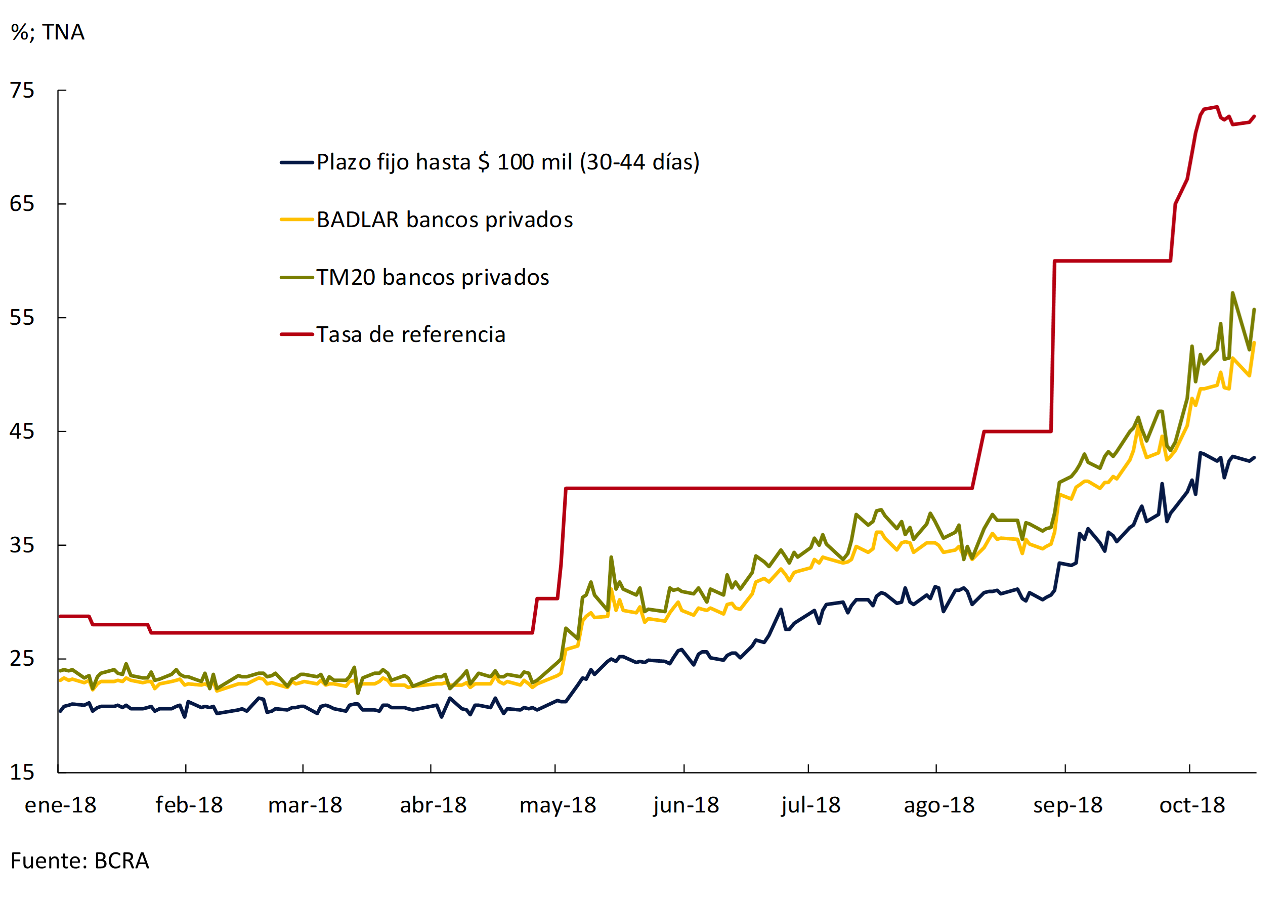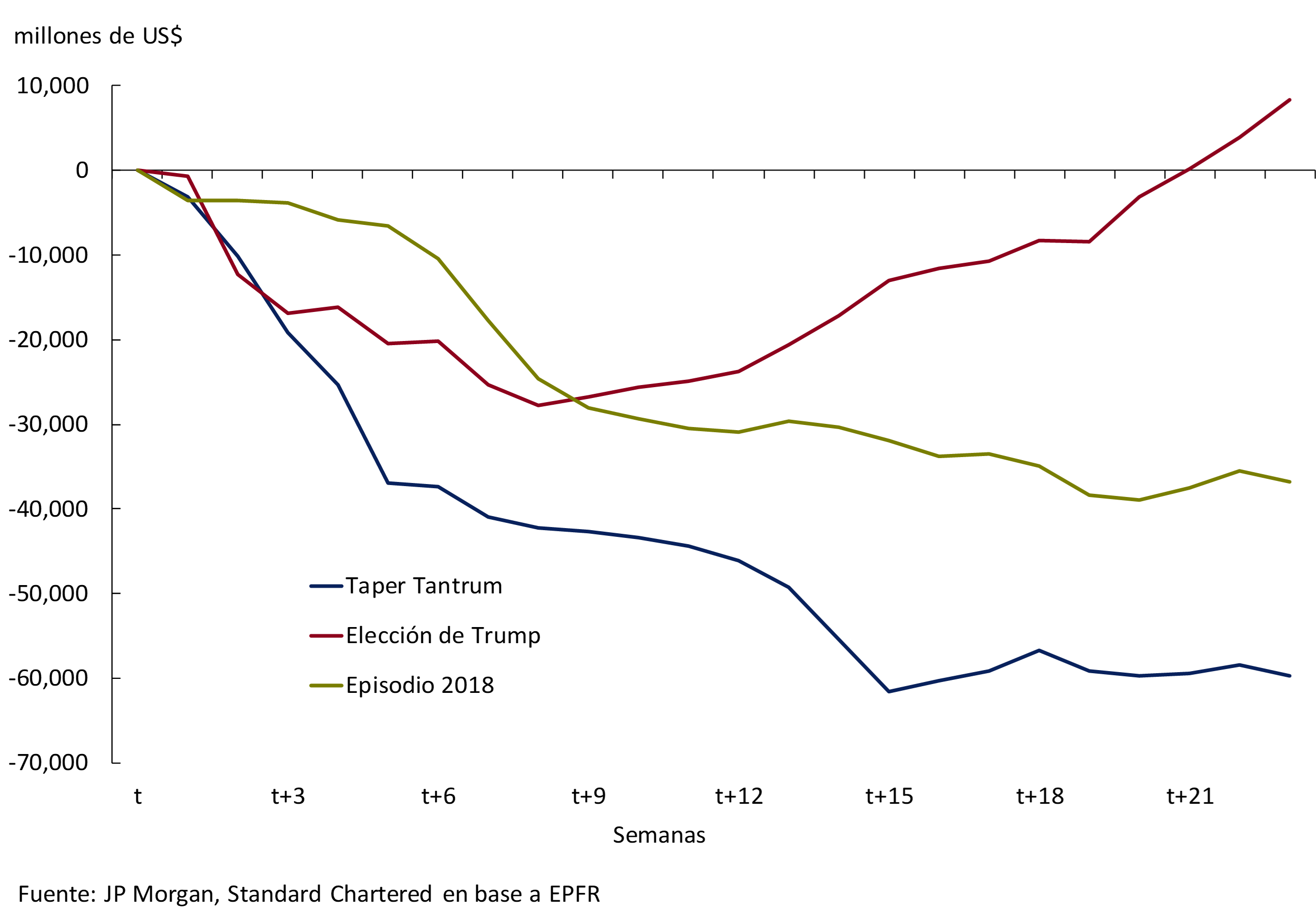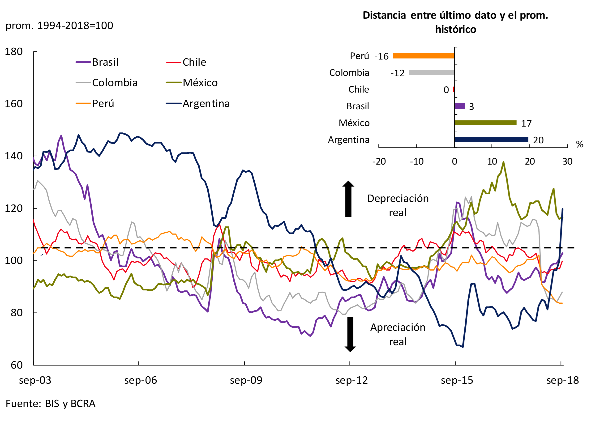 Las condiciones de acceso a los mercados financieros internacionales de las economías emergentes continuaron deteriorándose durante el tercer trimestre del año, aunque a menor ritmo que durante el trimestre previo. Entre los principales factores explicativos se cuentan la suba de tasas de interés y la expectativa de menor estímulo monetario por parte de la Reserva Federal de Estados Unidos (Fed), junto con nuevas señales de tensiones comerciales entre algunas de las economías de mayor porte. Todos estos elementos llevaron a una salida de capitales de países emergentes, a un aumento de las primas de riesgo soberano, y a una depreciación de sus monedas. Las economías más afectadas fueron aquellas con desequilibrios externos pronunciados y/o elevados niveles de endeudamiento.
