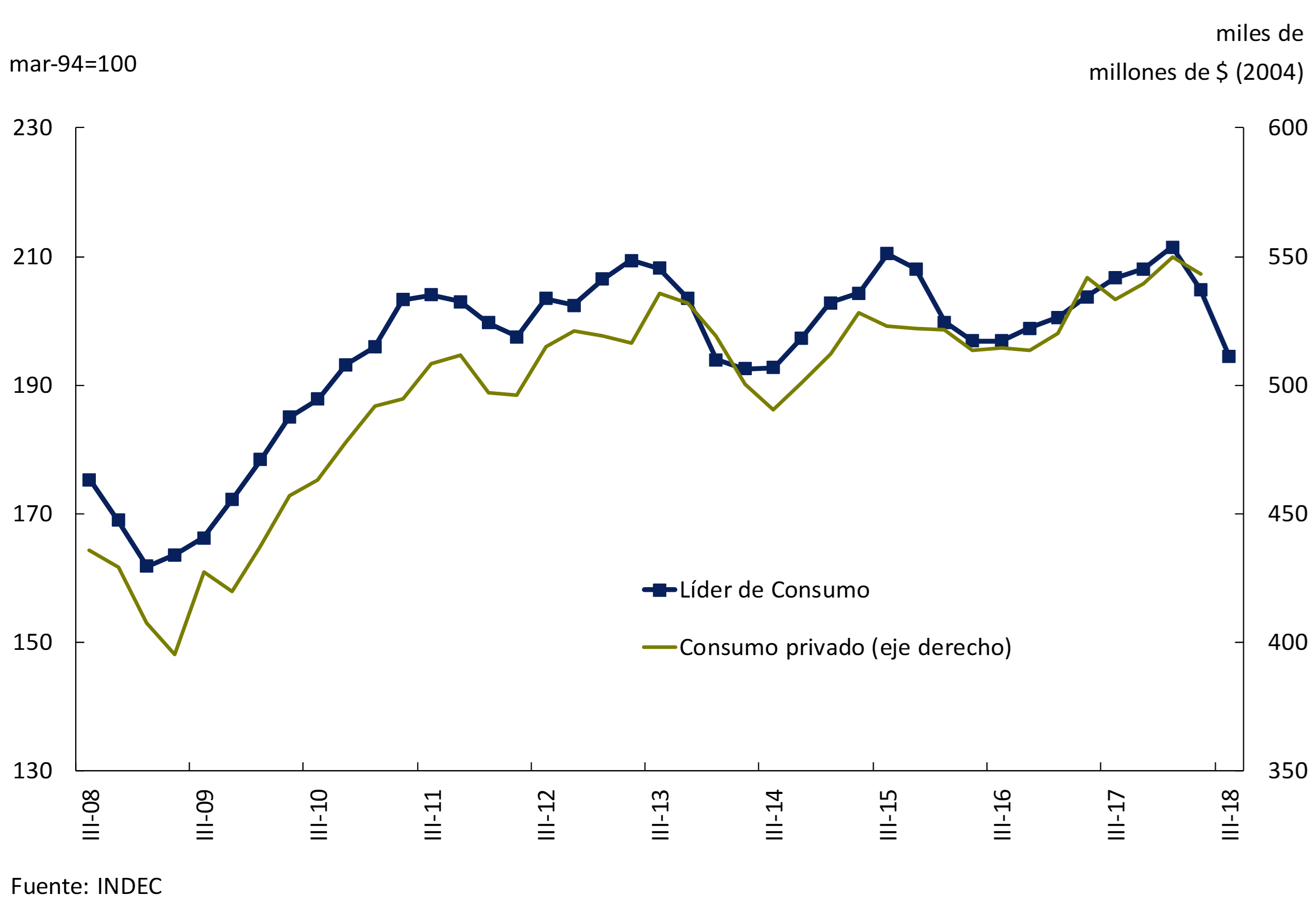 Se prevé que, en un escenario de mayor certidumbre, el consumo privado alcance un piso durante el primer trimestre de 2019 en línea con la reapertura de los acuerdos paritarios que permitirán mejorar los salarios reales con respecto a los mínimos proyectados para el cuarto trimestre de 2018.
