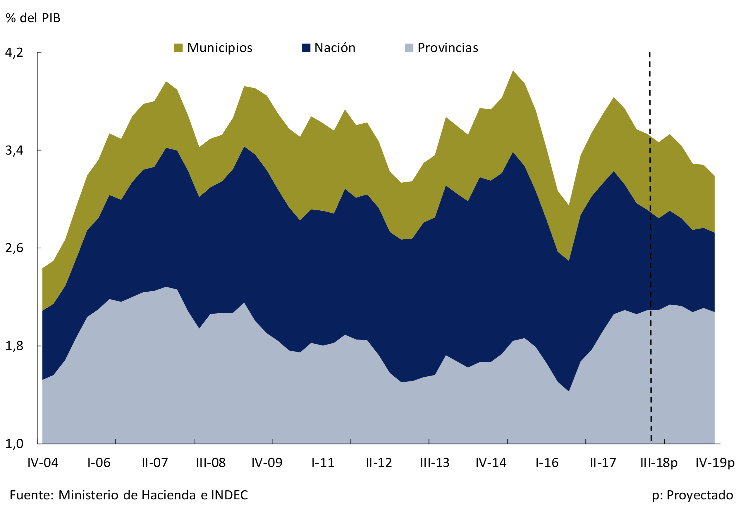Se espera que la tendencia negativa de la inversión privada continuará y se irá recuperando a medida que se despeje la incertidumbre financiera y mejoren las perspectivas de la demanda interna. Por su parte, la inversión pública tendrá una menor contribución que en 2017 en el marco de la política de consolidación de las cuentas fiscales llevada a cabo por el Poder Ejecutivo. Se estima que el gasto de capital del sector público consolidado sea inferior en el segundo semestre respecto al observado en la primera mitad del año, tendencia que continuaría en 2019 (ver Gráfico 3.6).