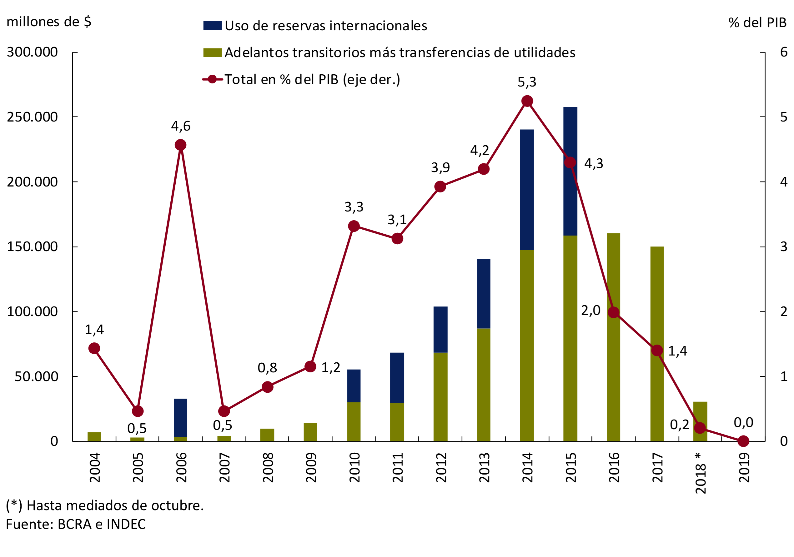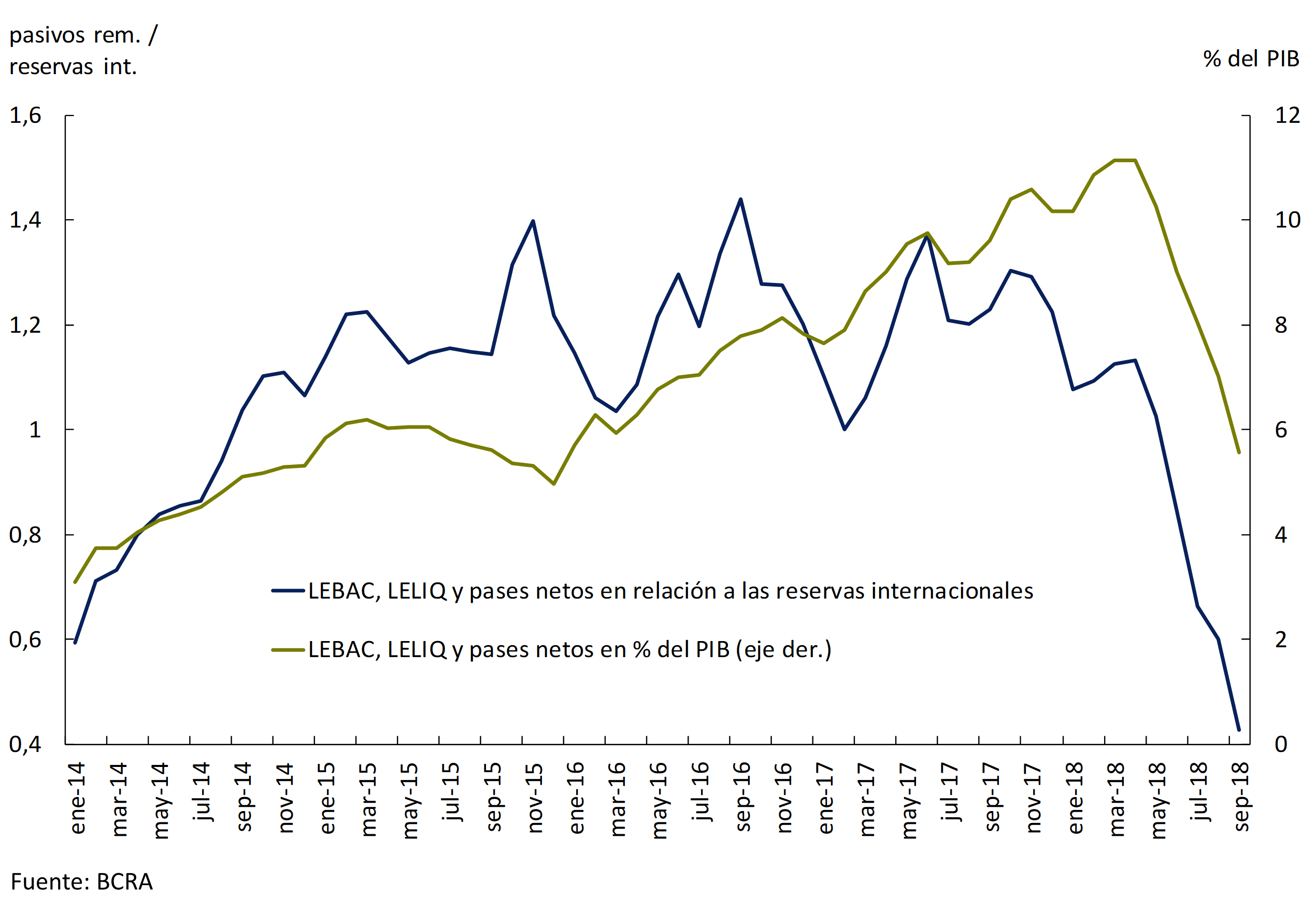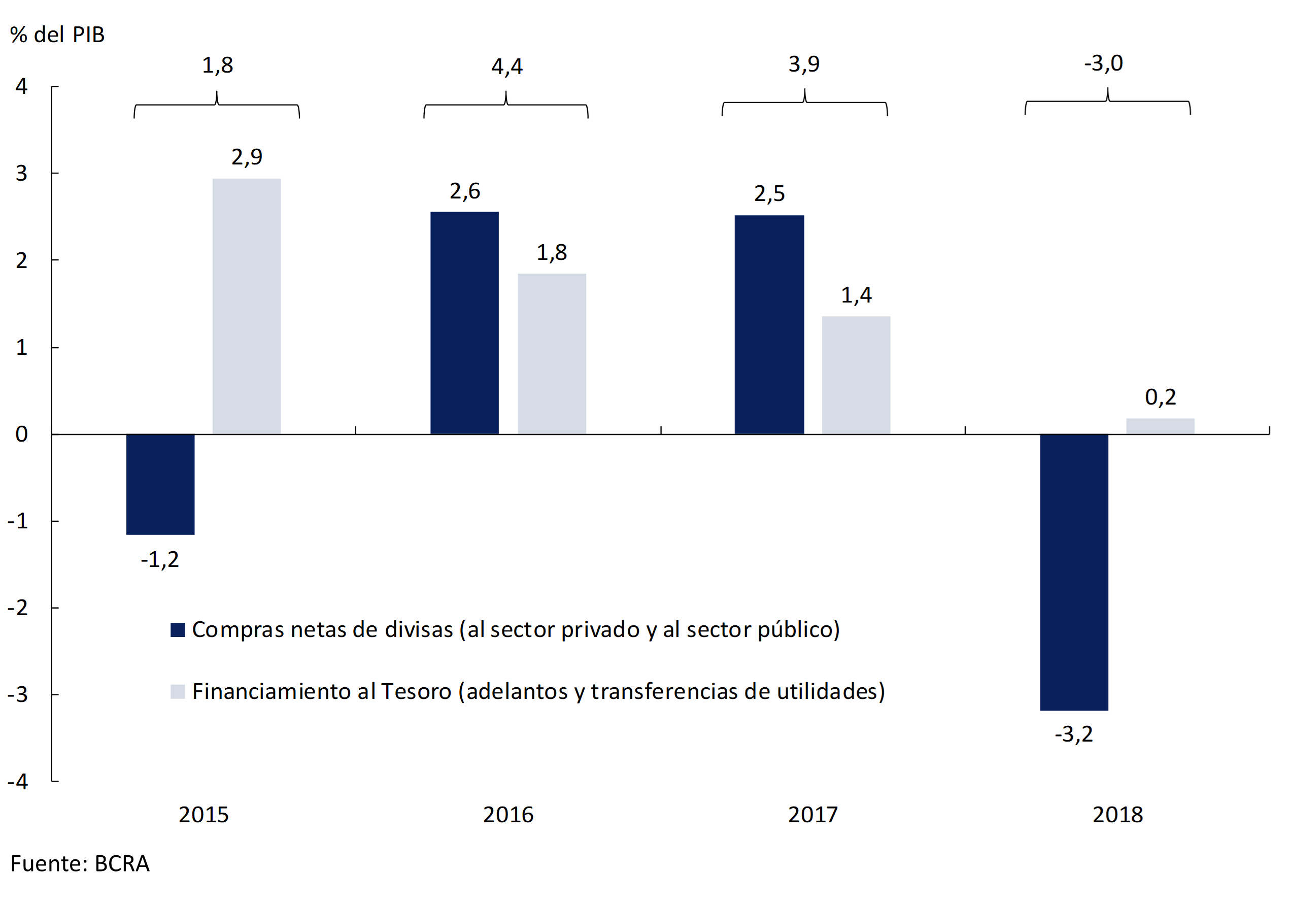 El nuevo esquema de política monetaria es consistente además con las metas de equilibrio fiscal primario en 2019 y superávit en 2020 establecidas por el Ministerio de Hacienda. El Banco Central no realiza más transferencias al Tesoro. La eliminación de esta fuente de emisión monetaria refuerza el compromiso del BCRA con una inflación decreciente a lo largo del tiempo y termina con un factor de crecimiento de las Letras del Banco Central (LEBAC) en años anteriores, y que no estará presente hacia el futuro en la dinámica de las Letras de Liquidez (LELIQ).