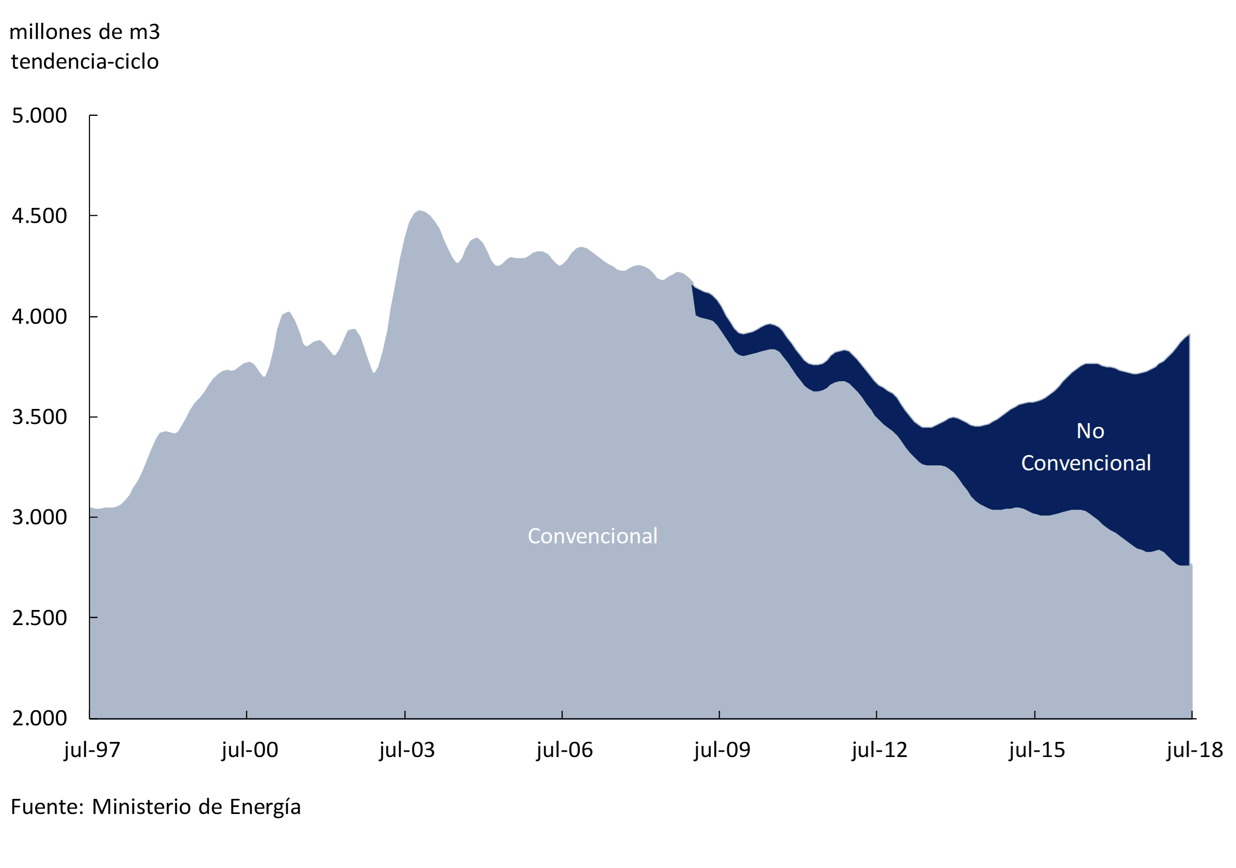 Una de las principales excepciones a la dinámica desfavorable de la inversión se da en el sector energético, en especial en la explotación de pozos para extracción de petróleo y gas en la formación de Vaca Muerta. Los proyectos en ese sector no se vieron afectados por las turbulencias financieras y cambiarias recientes y las perspectivas para los próximos años son alentadoras.