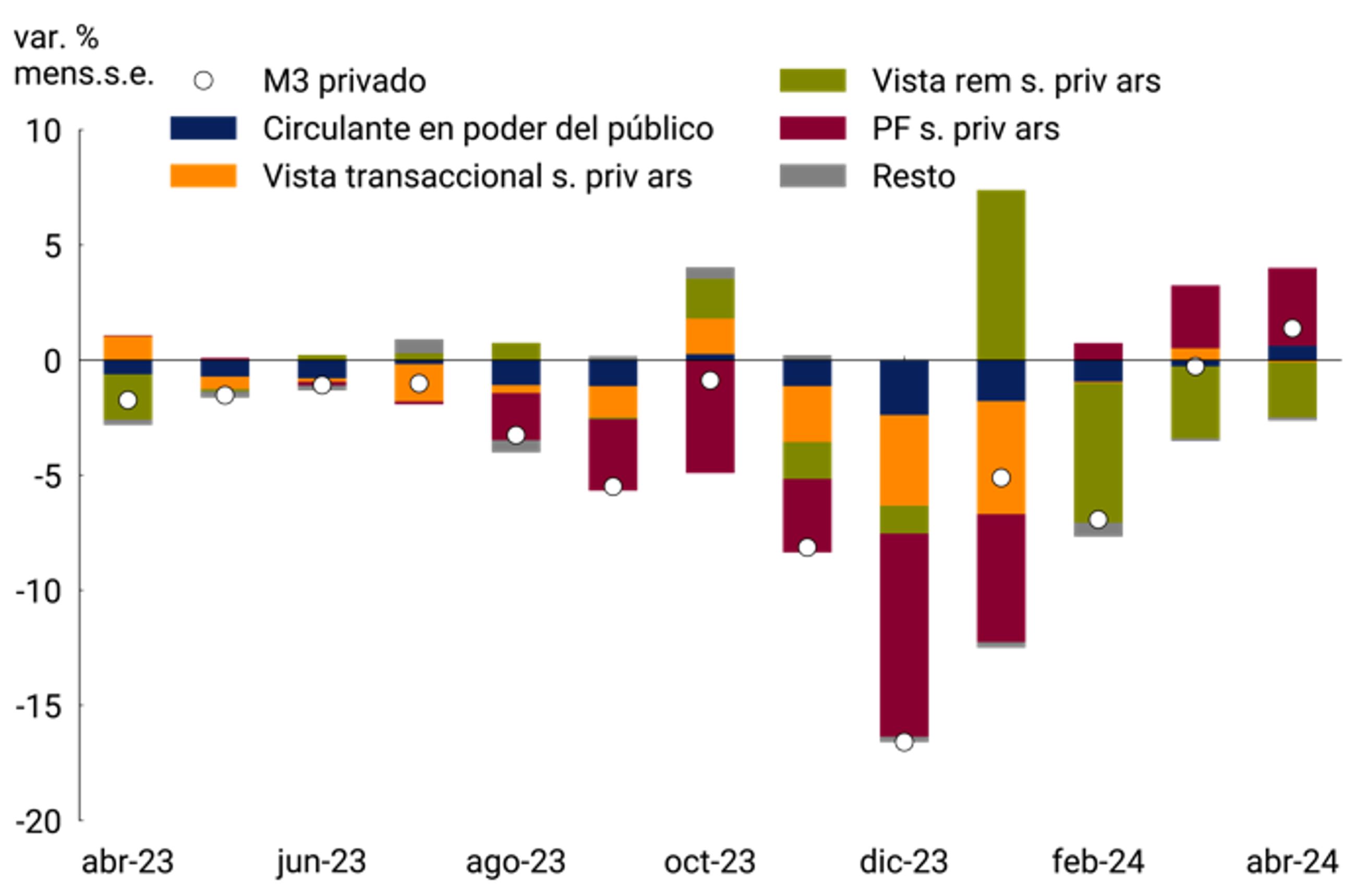 3 El M3 privado incluye el circulante en poder del público y los depósitos en pesos del sector privado no financiero (a la vista, a plazo y otros).