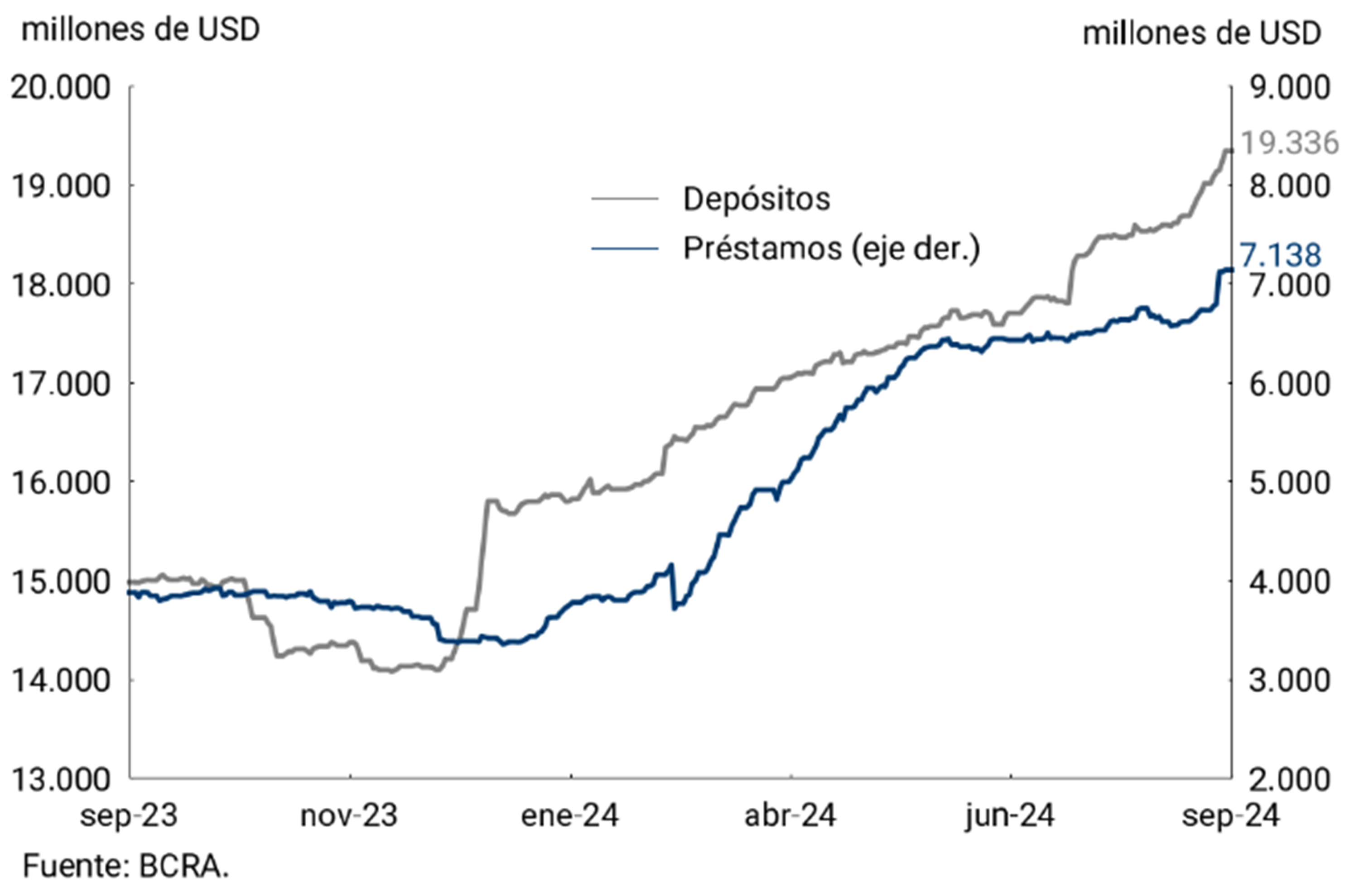 Los depósitos en moneda extranjera presentaron un aumento cercano USD750 millones durante agosto, explicado en gran parte por el nuevo blanqueo de capitales que se reglamentó a través del “Régimen de Regularización de Activos”.