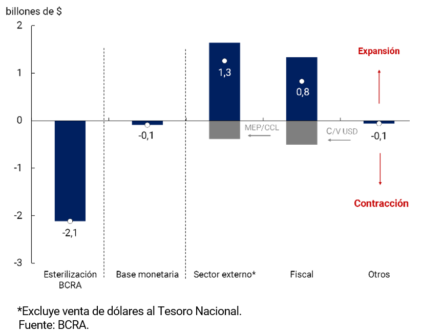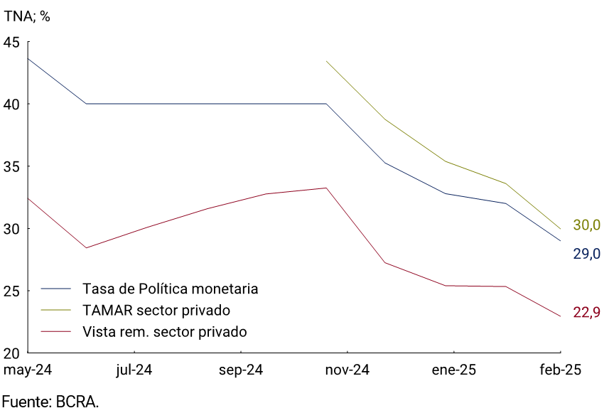 1 El M3 privado incluye el circulante en poder del público y los depósitos en pesos del sector privado no financiero (a la vista, a plazo y otros).
