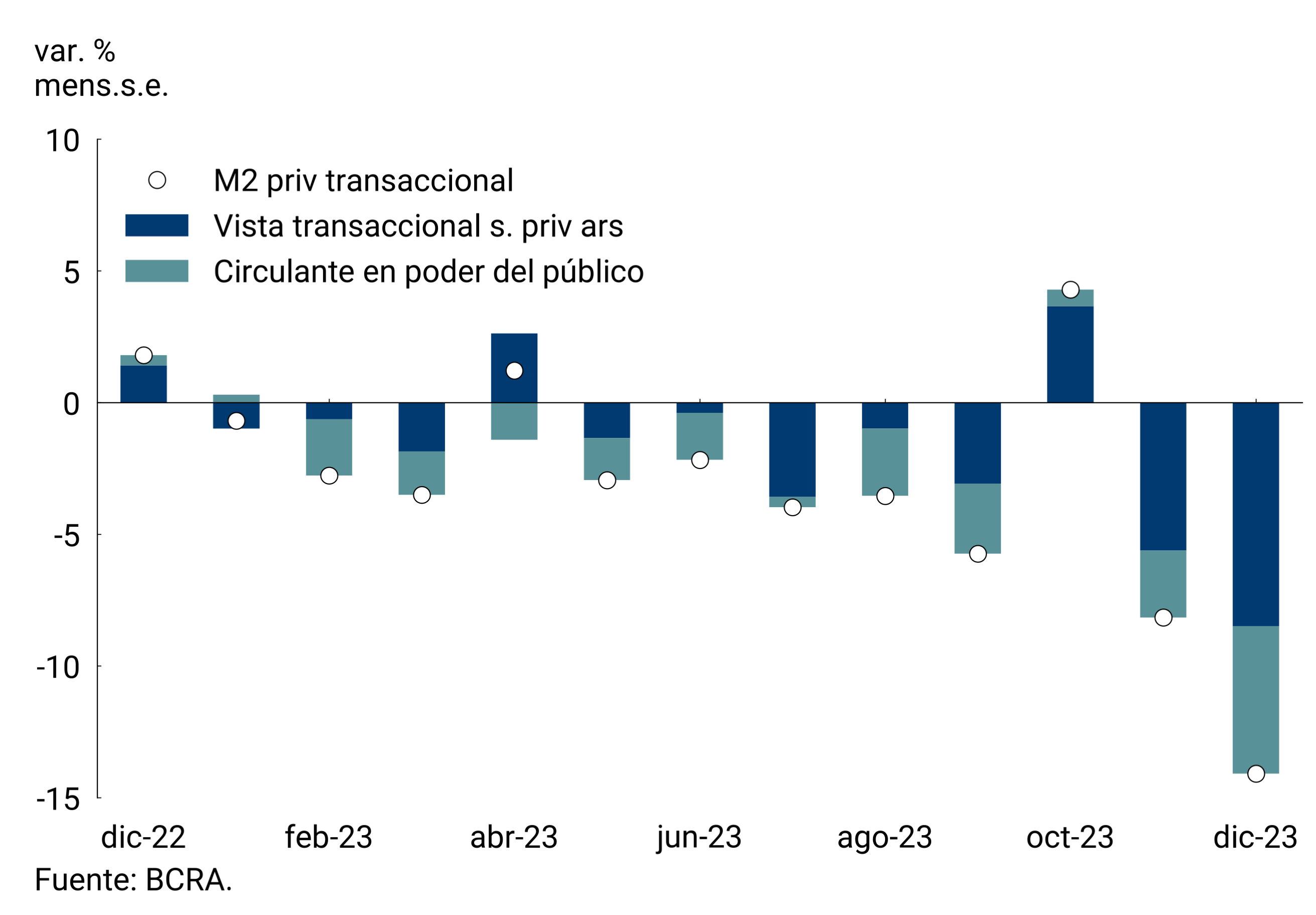 5 El M3 privado incluye el circulante en poder del público y los depósitos en pesos del sector privado no financiero (a la vista, a plazo y otros).