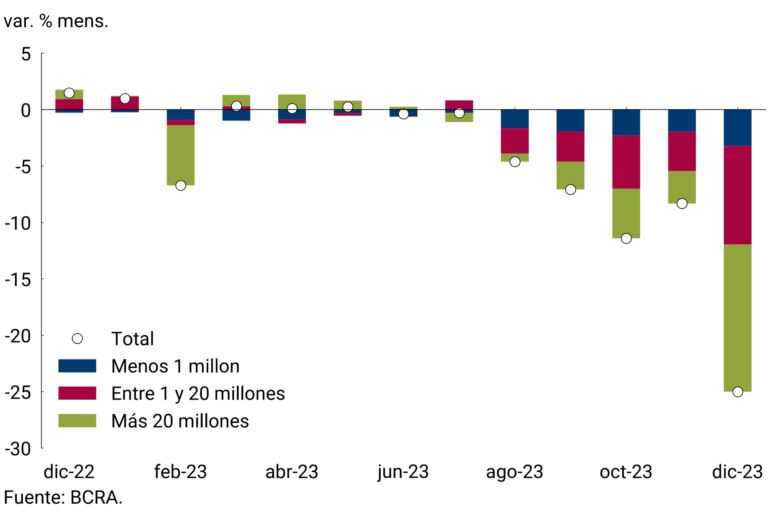 Contribución a la var. mensual real por estrato de monto