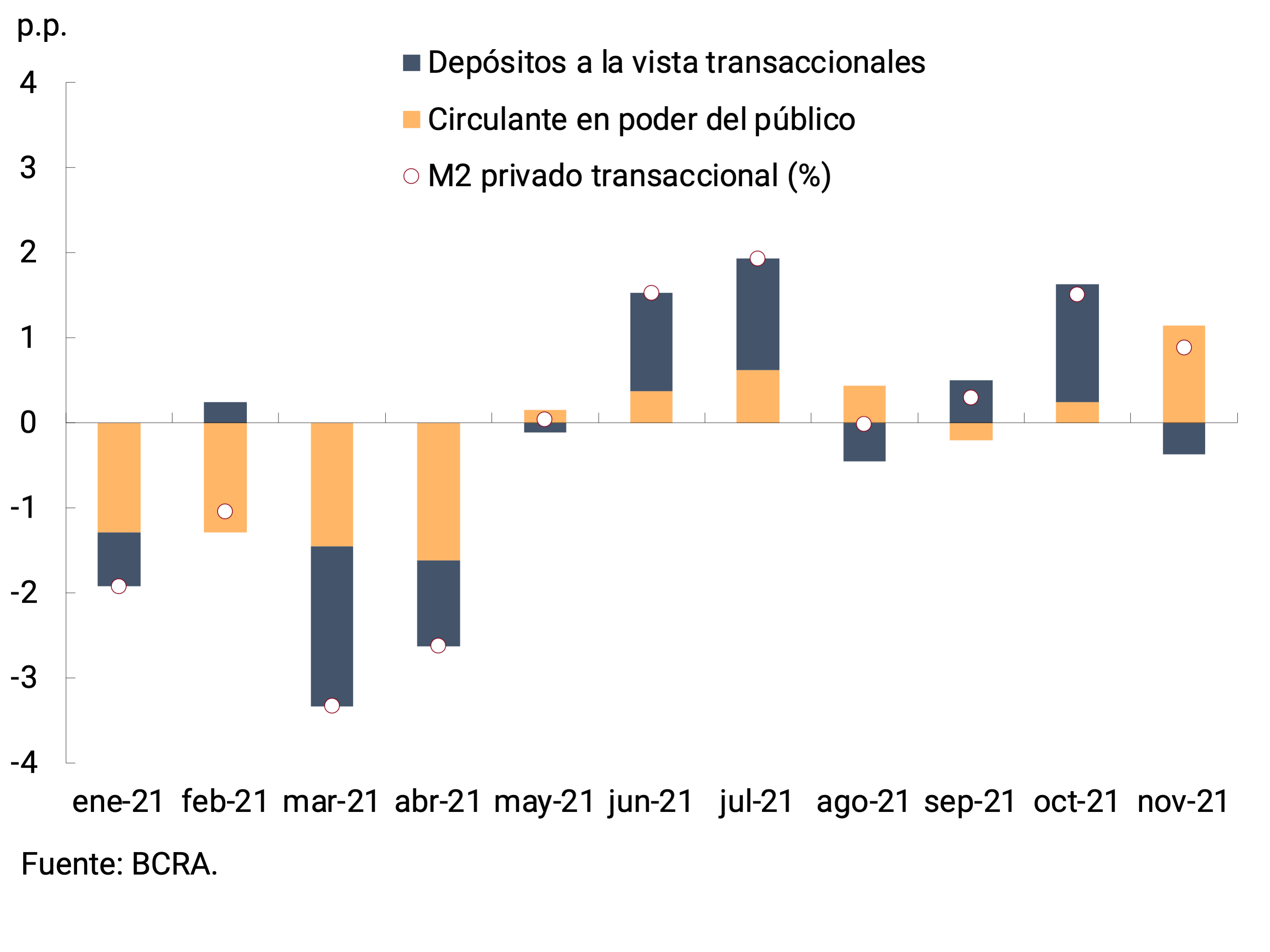 2 M2 privado excluyendo depósitos a la vista remunerados de empresas y prestadoras de servicios financieros. Se excluyó este componente dado que se asemeja más a un instrumento de ahorro que a un medio de pago.