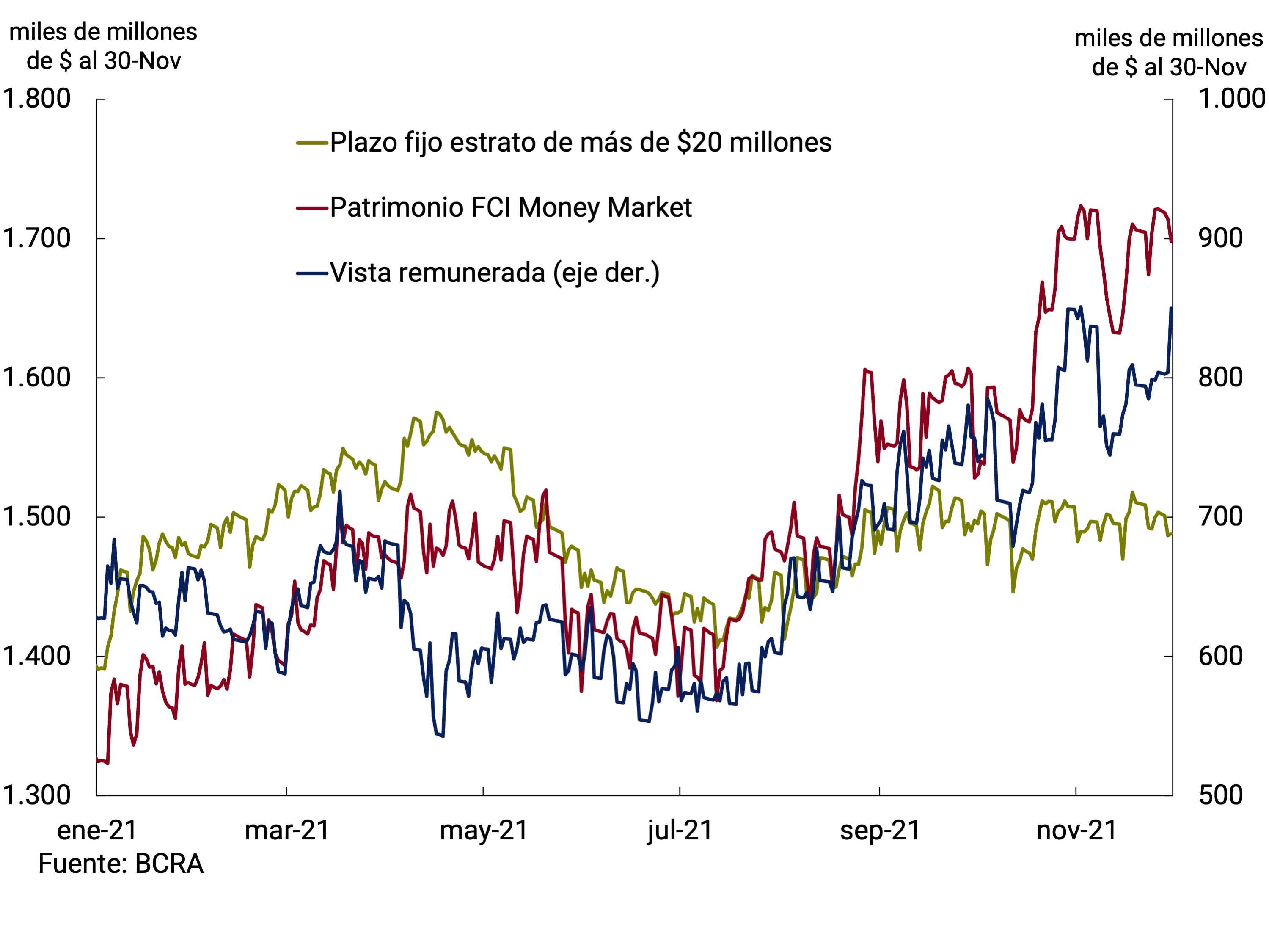 Gráfico 3.2 | Depósitos a plazo fijo de más de $20 millones, patrimonio de los FCI MM y vista remunerada