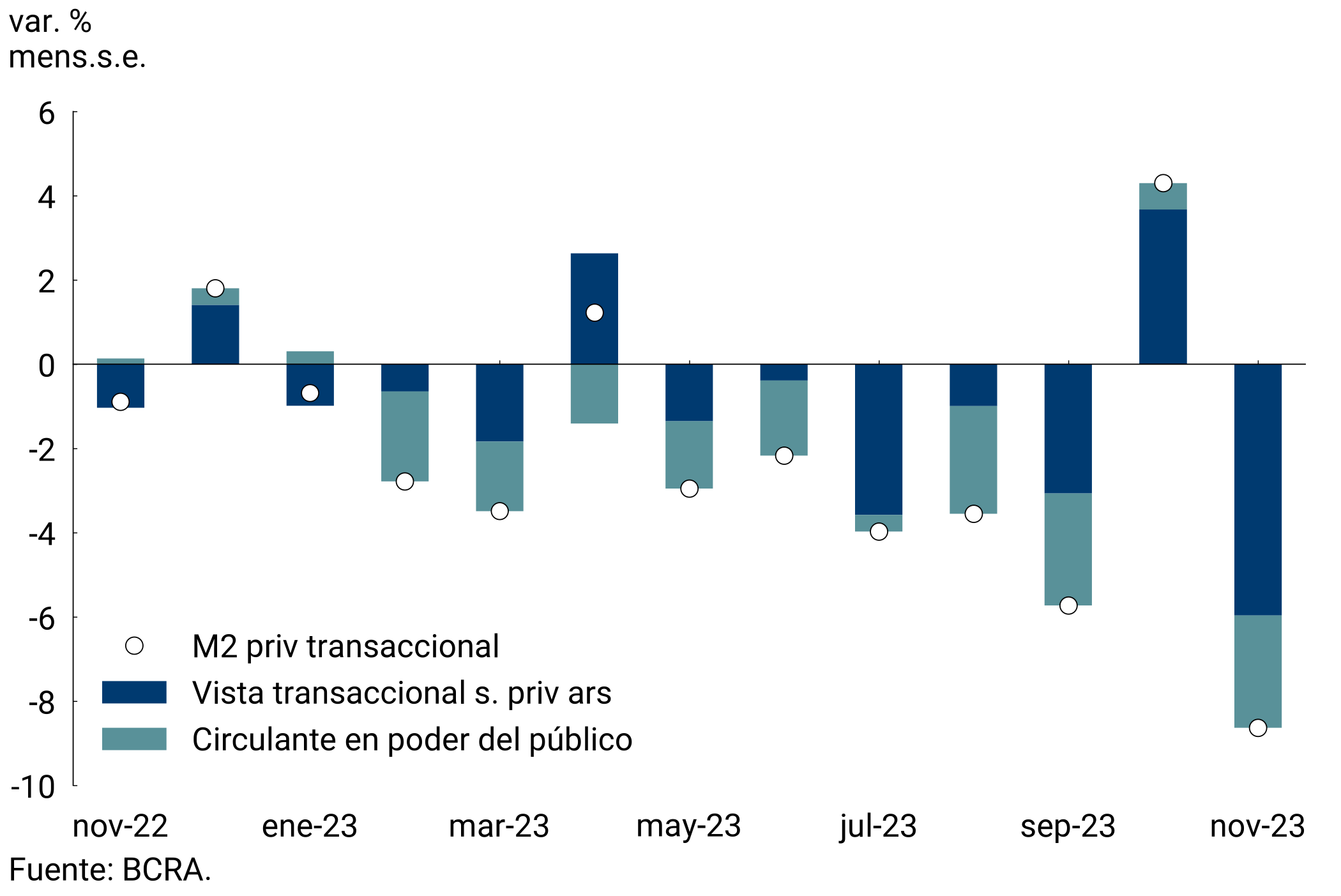 5 El M3 privado incluye el circulante en poder del público y los depósitos en pesos del sector privado no financiero (a la vista, a plazo y otros).