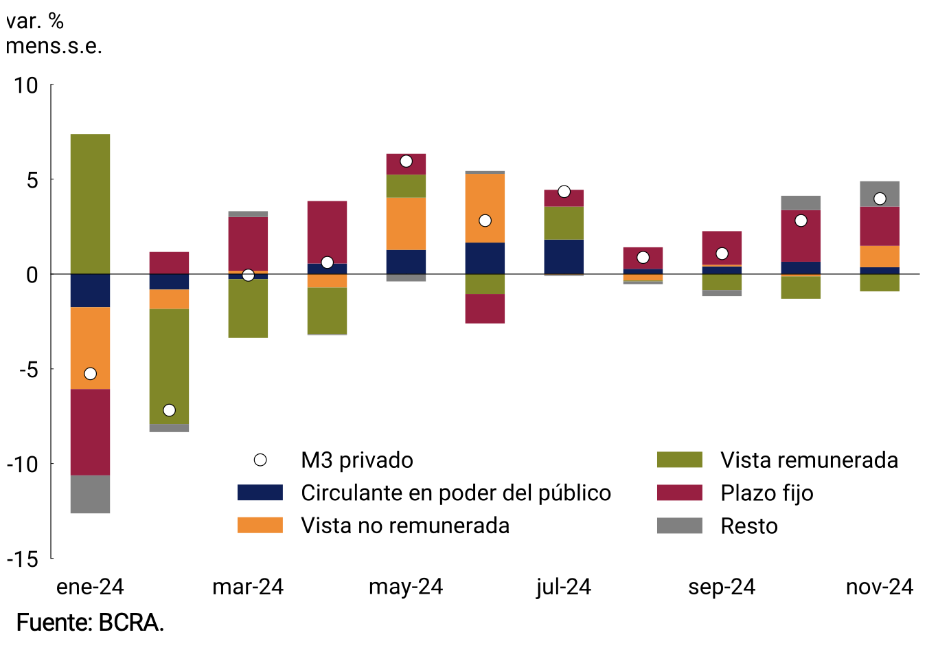 1 El M3 privado incluye el circulante en poder del público y los depósitos en pesos del sector privado no financiero (a la vista, a plazo y otros).