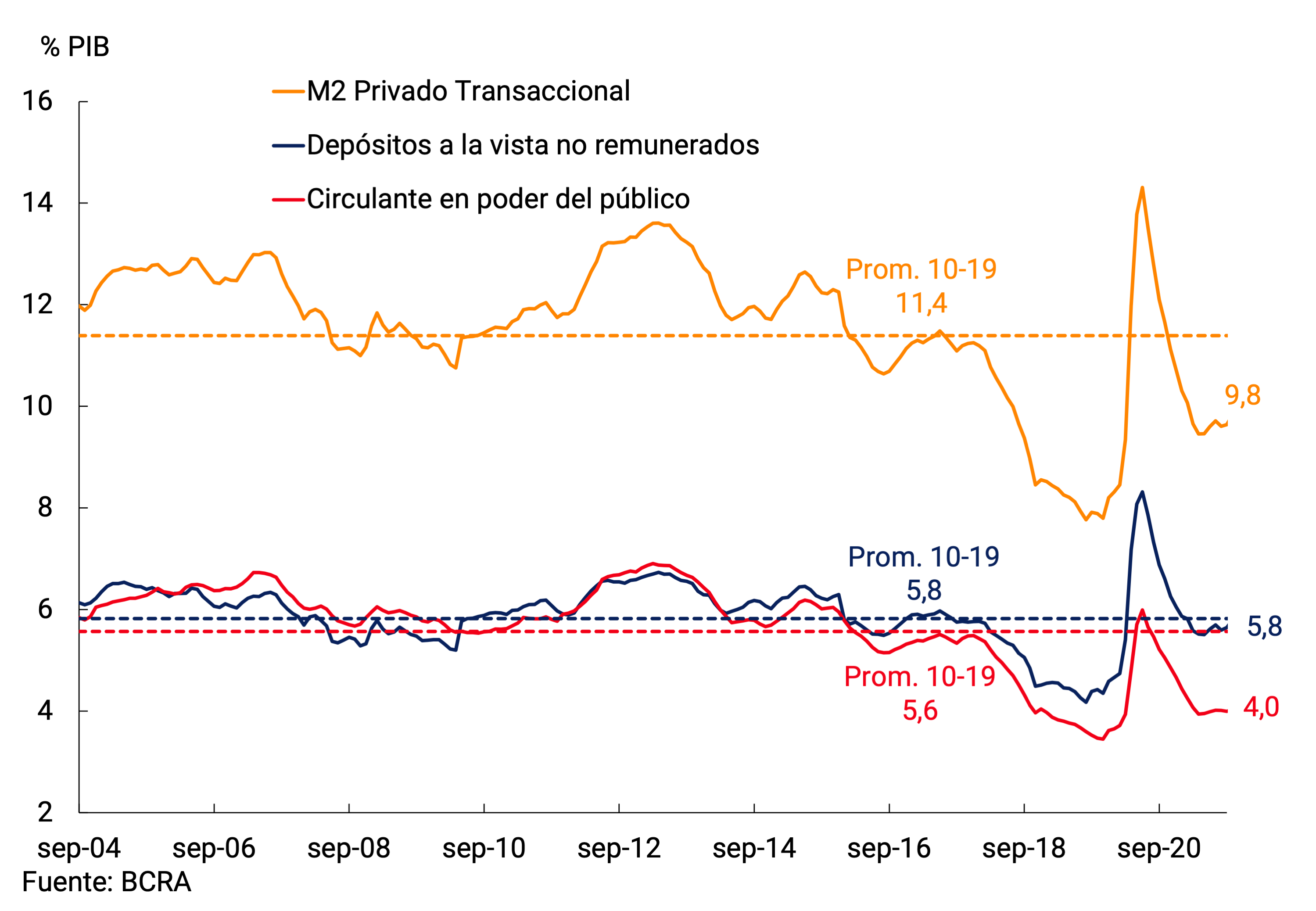 4 Incluye el circulante en poder del público y los depósitos en pesos del sector privado no financiero (vista, plazo y otros).