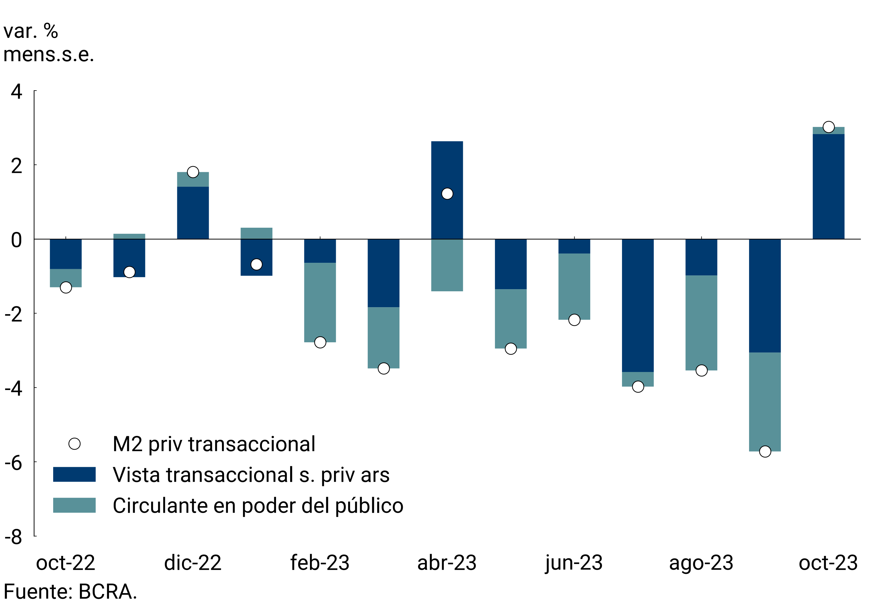 4 El M3 privado incluye el circulante en poder del público y los depósitos en pesos del sector privado no financiero (a la vista, a plazo y otros).