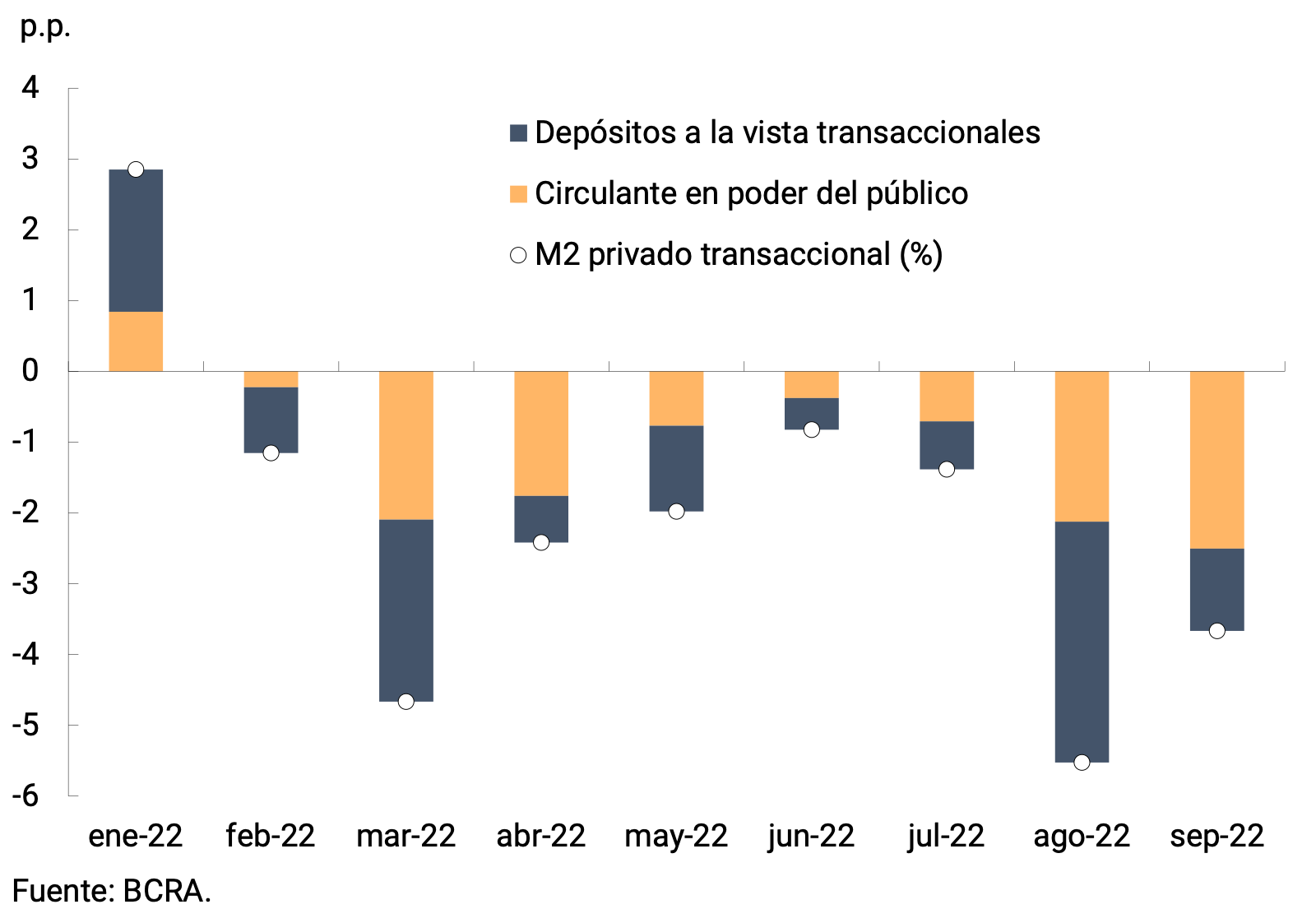 1 Corresponde al M2 privado excluyendo depósitos a la vista remunerados de empresas y prestadoras de servicios financieros. Se excluyó este componente dado que se asemeja más a un instrumento de ahorro que a un medio de pago.