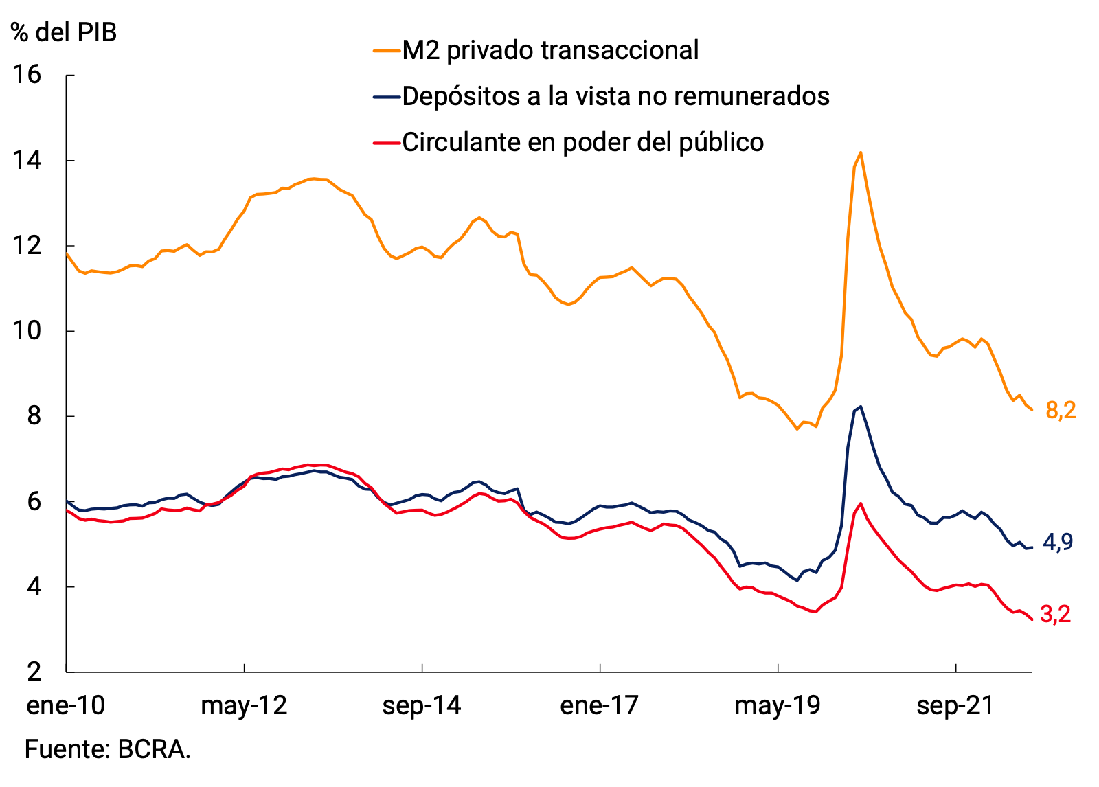4 Incluye el circulante en poder del público y los depósitos en pesos del sector privado no financiero (a la vista, a plazo y otros).