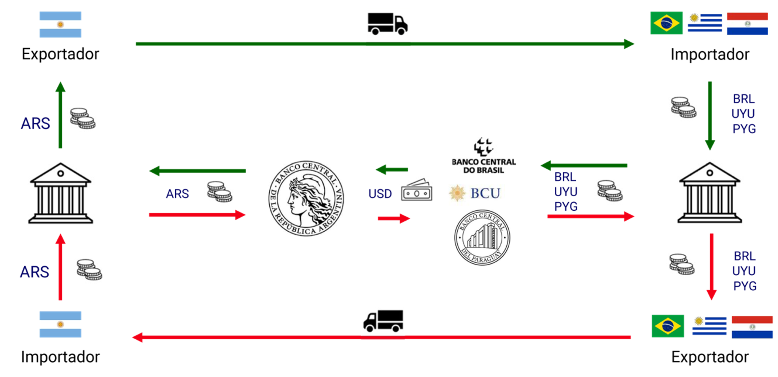 Por último, los miembros del BRICS vienen impulsando el uso de sus propias monedas para el intercambio comercial dentro del bloque (ver el apartado de Sistema de Pagos en Moneda Local en el Mercosur). Esto es de especial interés para la actual coyuntura de Argentina ya que el comercio con los miembros representa, aproximadamente, el 29% de las exportaciones y el 43% de las importaciones.