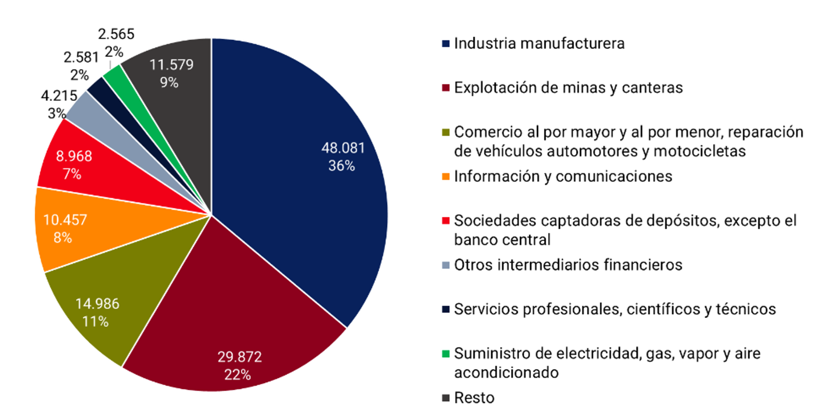 39 La clasificación sectorial se efectuó considerando la actividad principal de la empresa receptora de la inversión, de acuerdo al Censo Nacional Económico, complementado, en casos particulares, con el Clasificador Nacional de Actividades Económicas (CLANAE 2010), a nivel letra. Para el caso de “Intermediación financiera y servicios de seguros” (letra K), se desagrupó en cuatro diferentes sectores: Sociedades captadoras de depósitos, excepto el Banco Central; Seguros; Auxiliares financieros y Otros intermediarios financieros.
